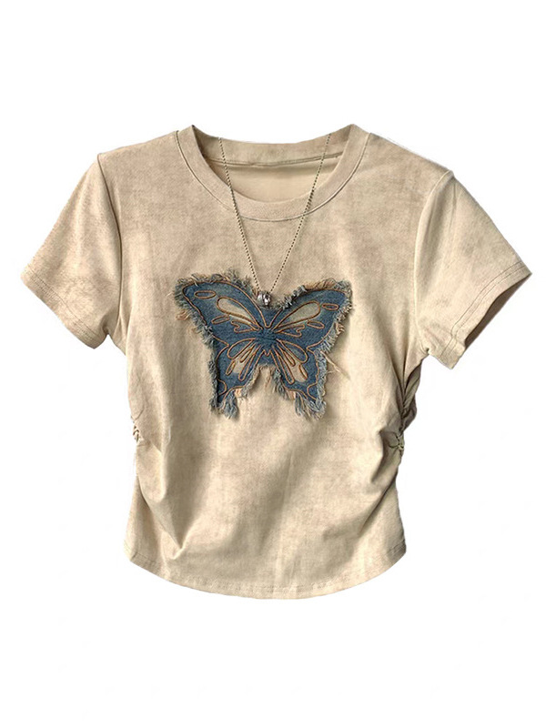 【全台免運!限時特惠買一送一!】小個子修身短款蝴蝶短袖
