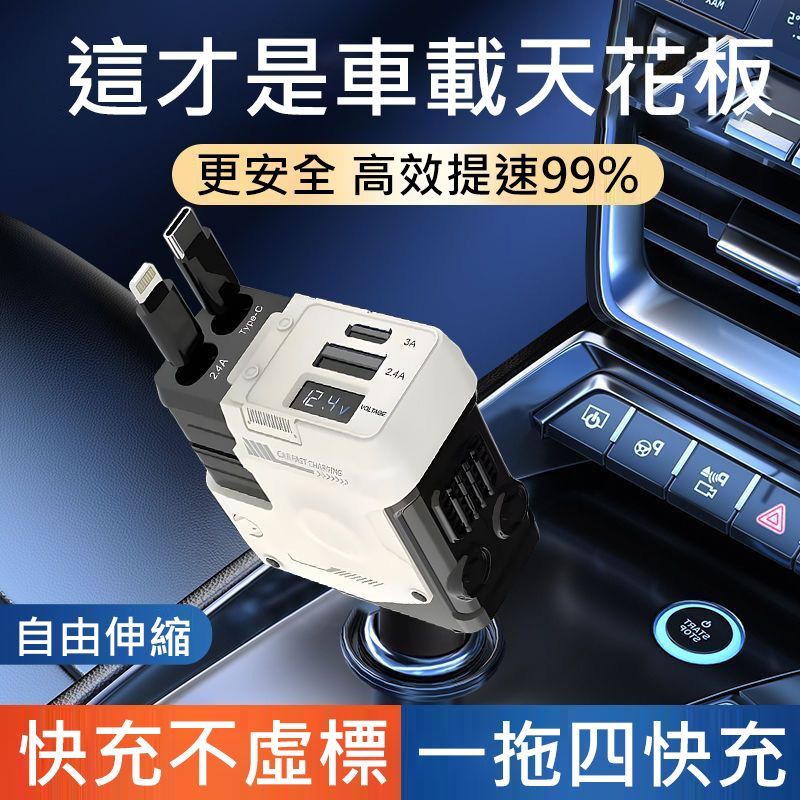 【汽車通用!】車載伸縮120w點煙器插頭四合一超級快充