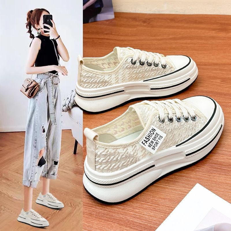 【蕾絲網鞋】新款女士韓版休閒板鞋