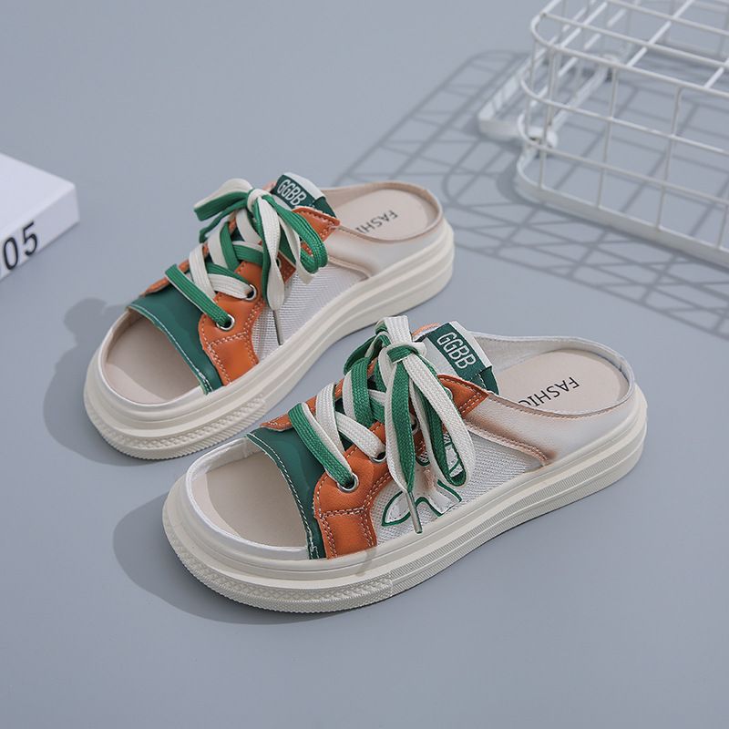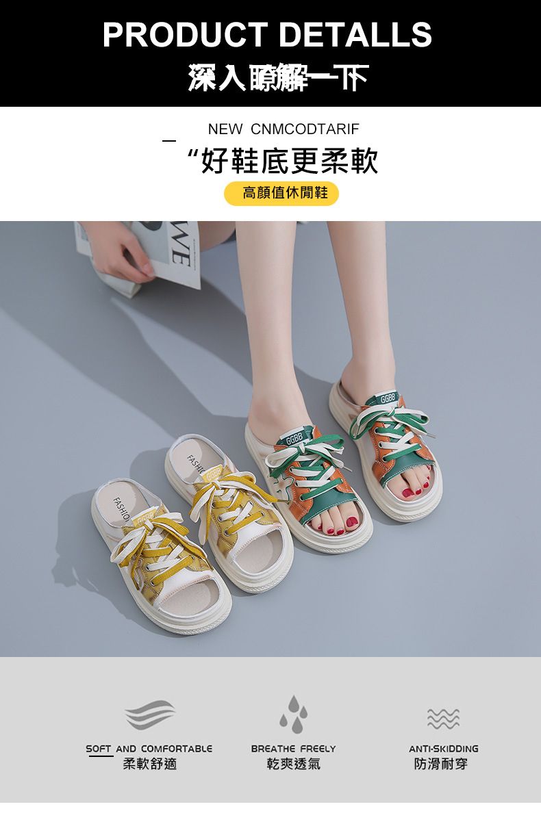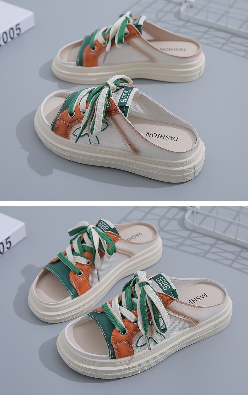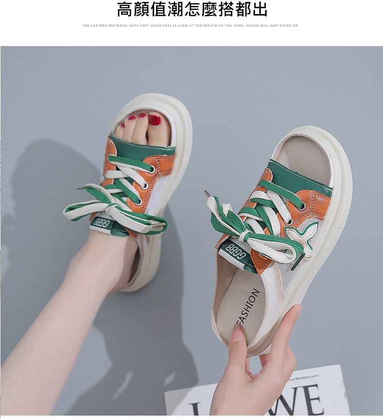 【高挑透氣!】夏季女士休閒一腳蹬半拖鞋【綠色】+【黃色】各一雙(優惠400)