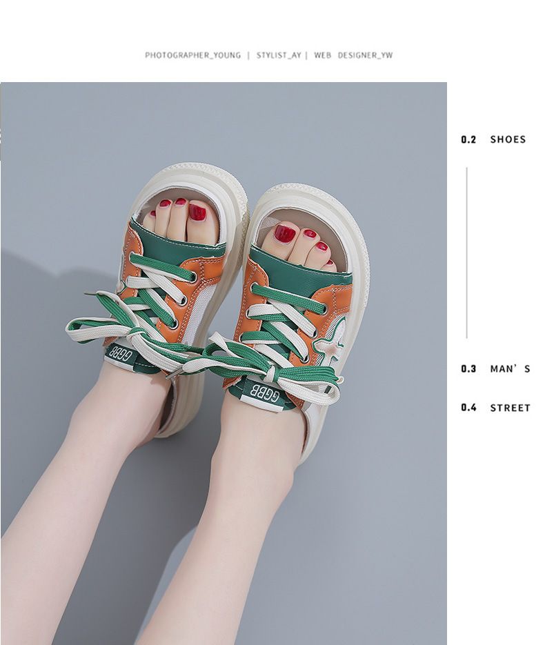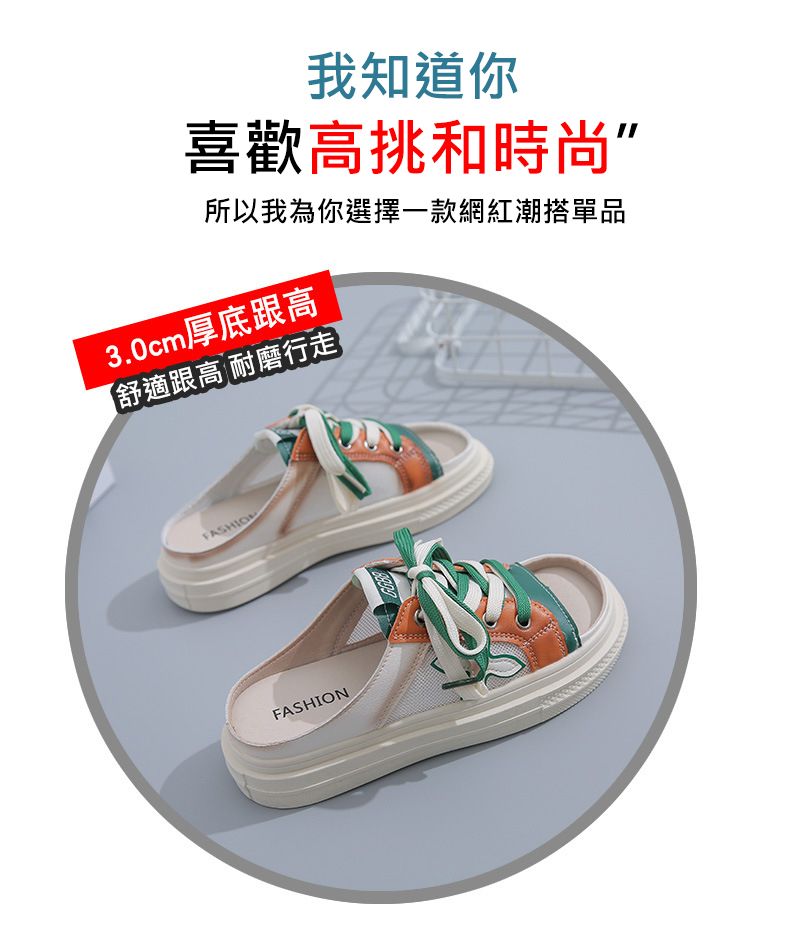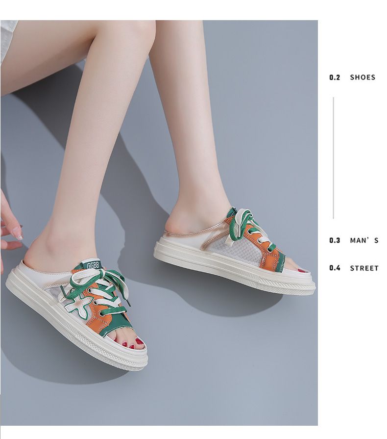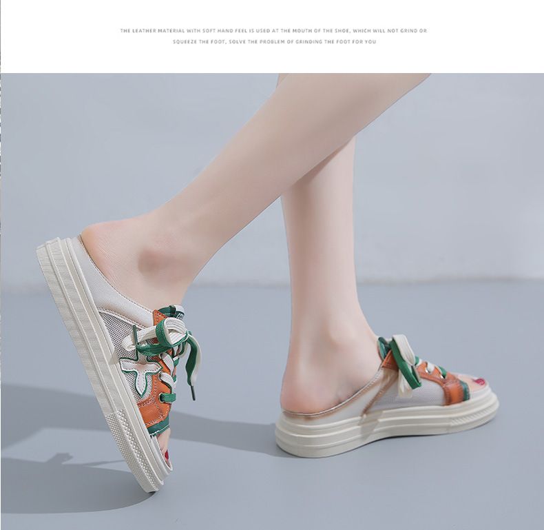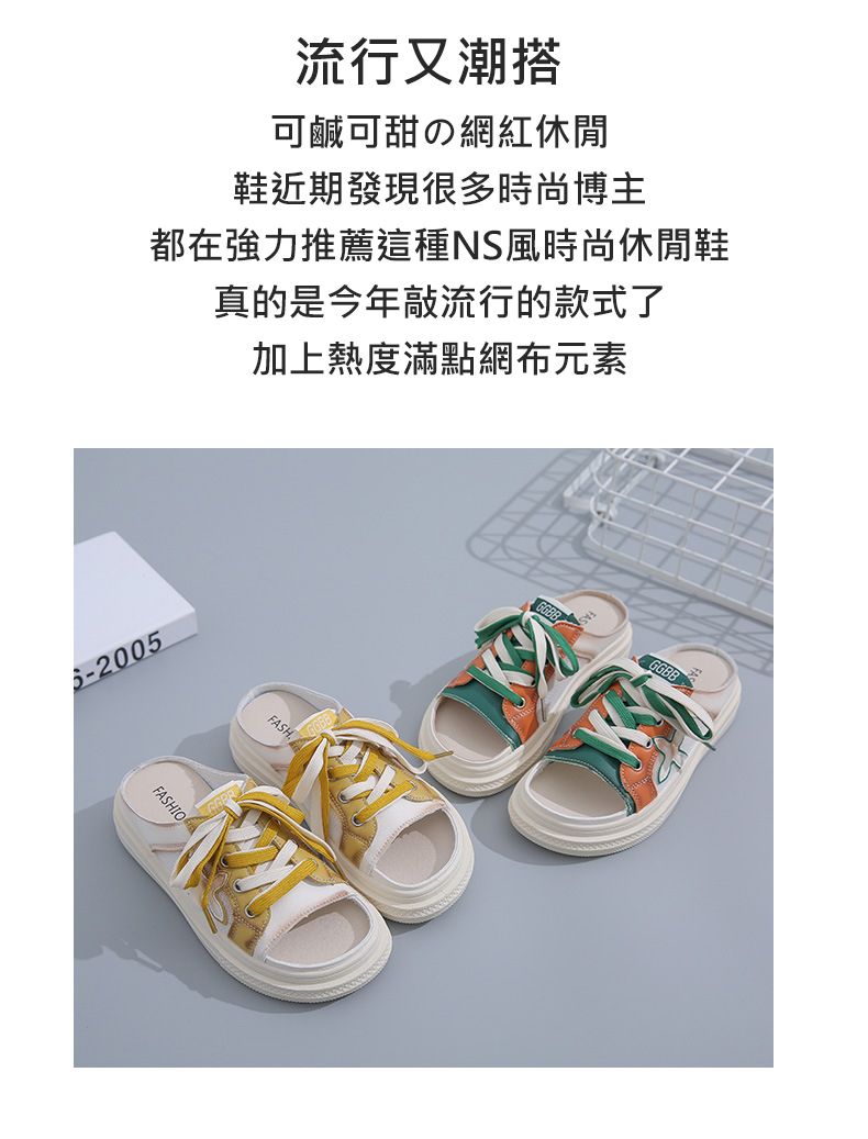 【高挑透氣!】夏季女士休閒一腳蹬半拖鞋【綠色】+【黃色】各一雙(優惠400)
