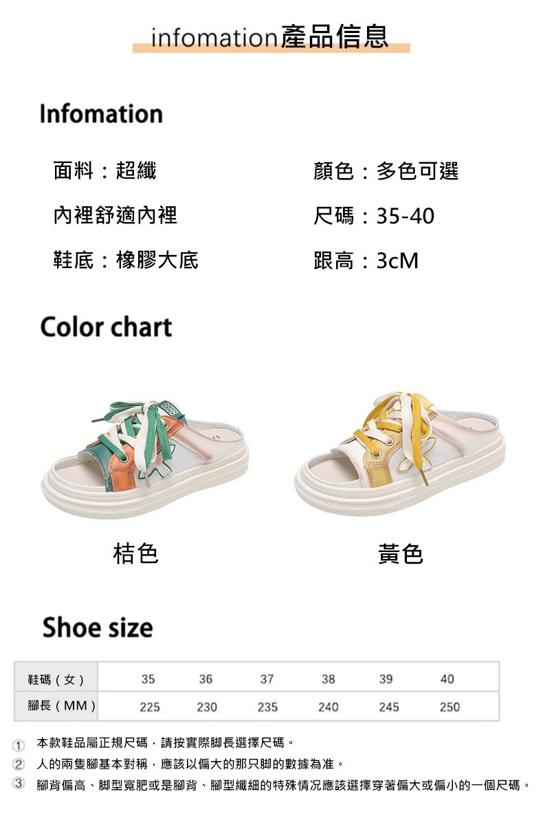 【高挑透氣!】夏季女士休閒一腳蹬半拖鞋【黃色】一雙