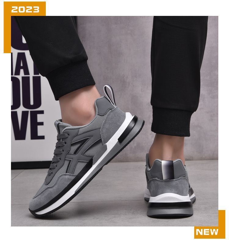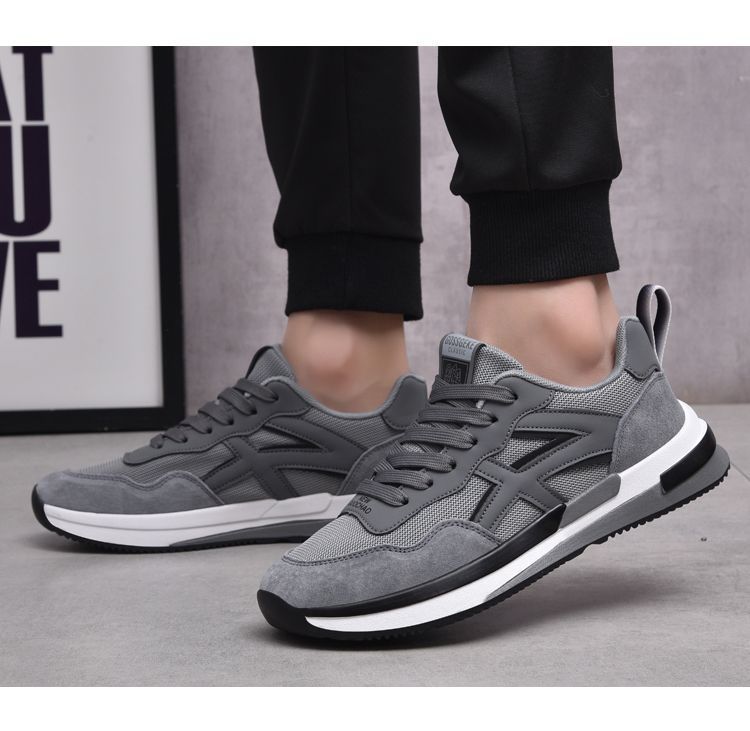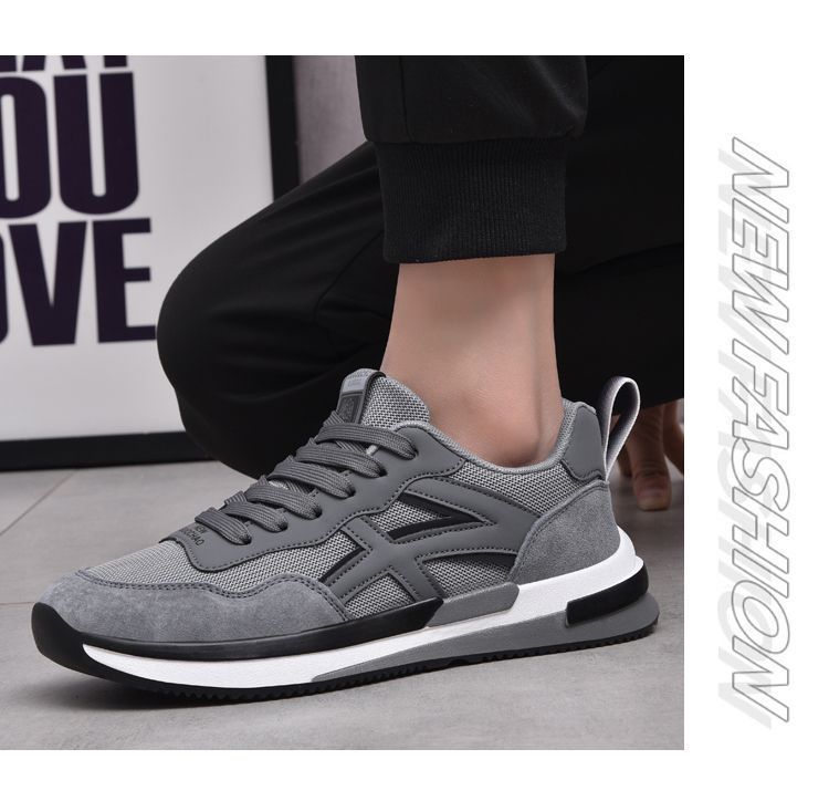 【不悶腳!】圓頭皮網拼接男運動鞋【灰色】+【黑色】各一雙(優惠400)