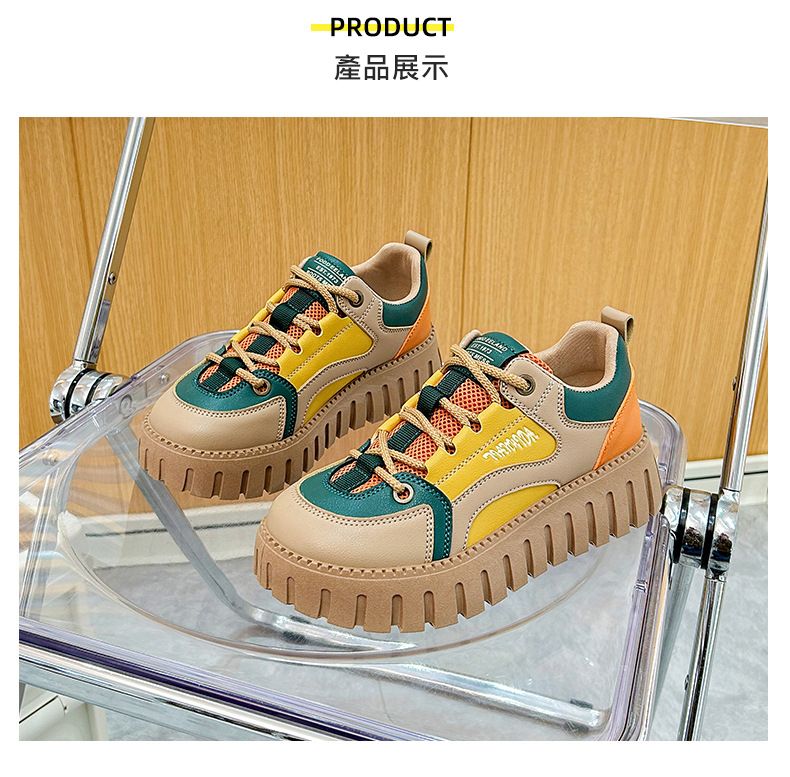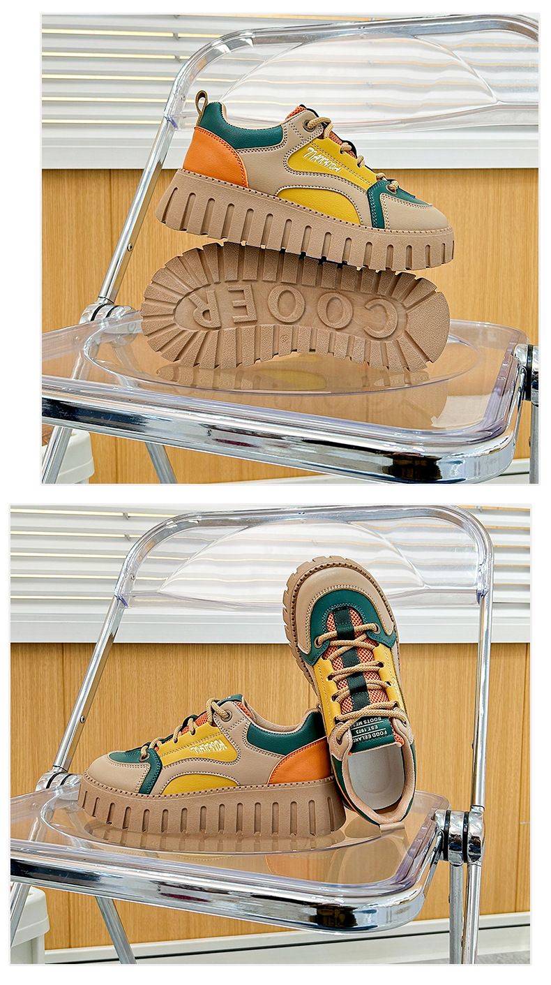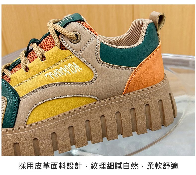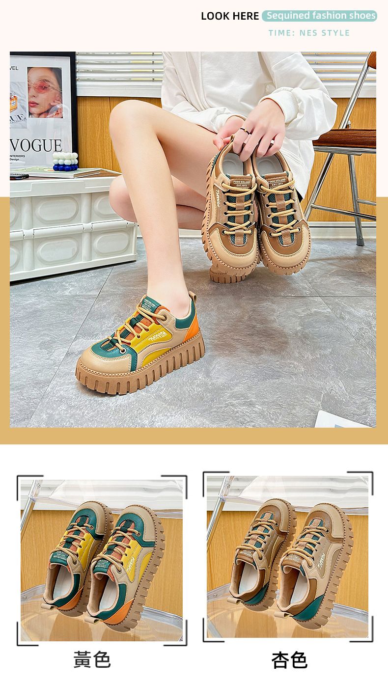 【凹凸紋路鞋底】新款女士低幫柔軟乾爽老爹鞋【黃色】+【杏色】各一雙(優惠400)