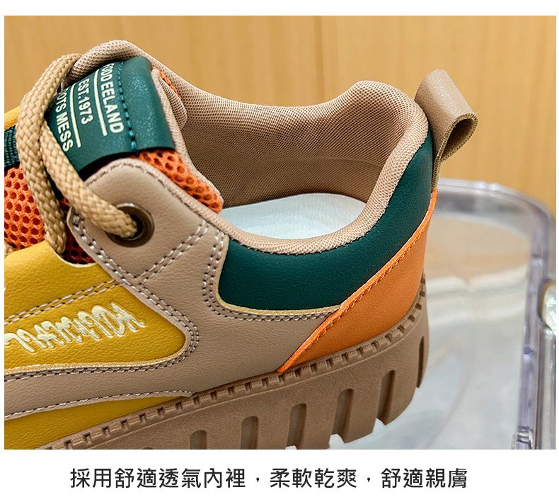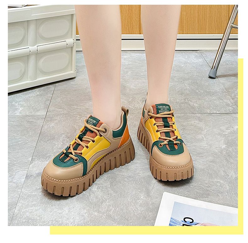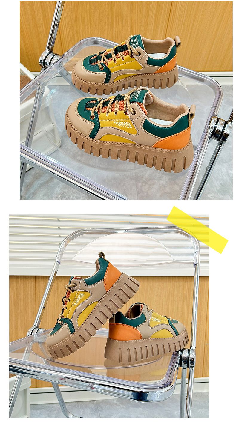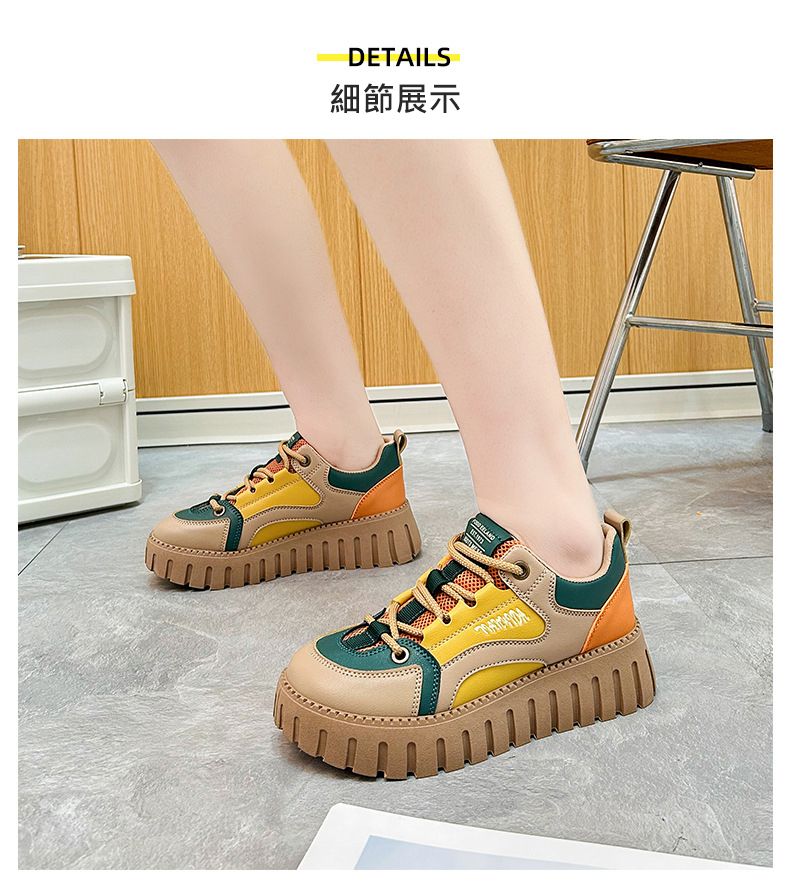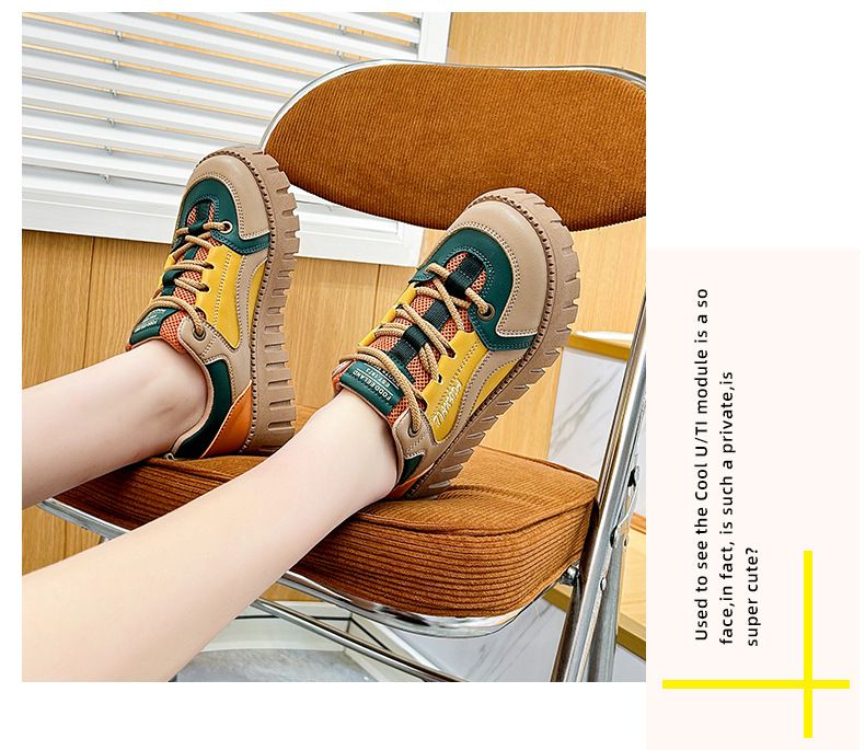 【凹凸紋路鞋底】新款女士低幫柔軟乾爽老爹鞋【黃色】+【杏色】各一雙(優惠400)
