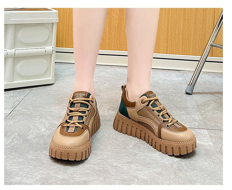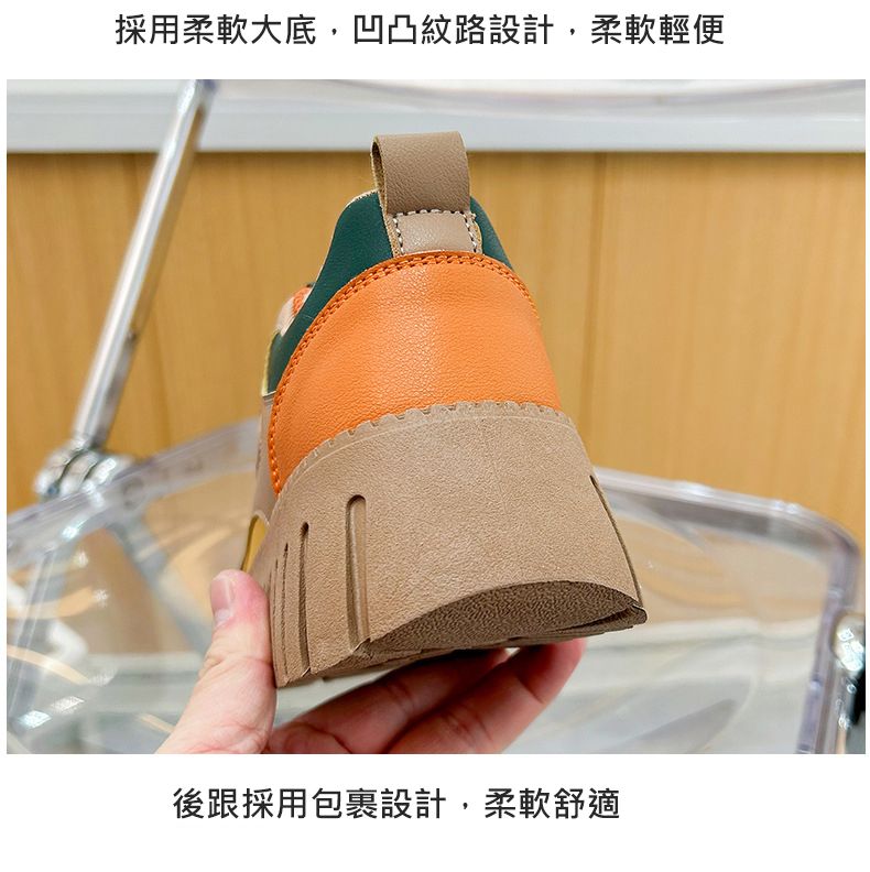 【凹凸紋路鞋底】新款女士低幫柔軟乾爽老爹鞋【杏色】一雙