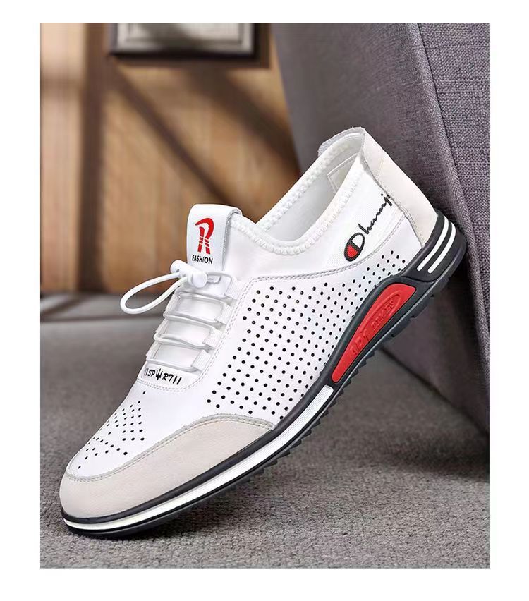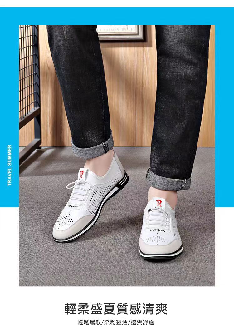 男士百搭鏤空軟皮軟底皮鞋【買一送一】【白色】兩雙