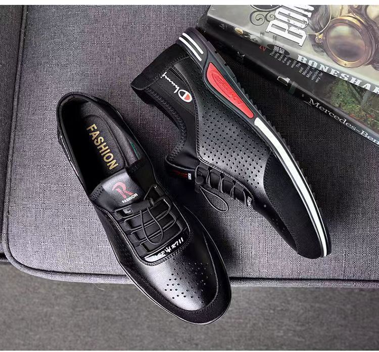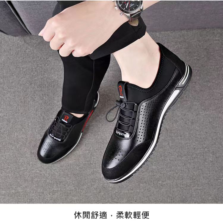 男士百搭鏤空軟皮軟底皮鞋【買一送一】【黑色】兩雙