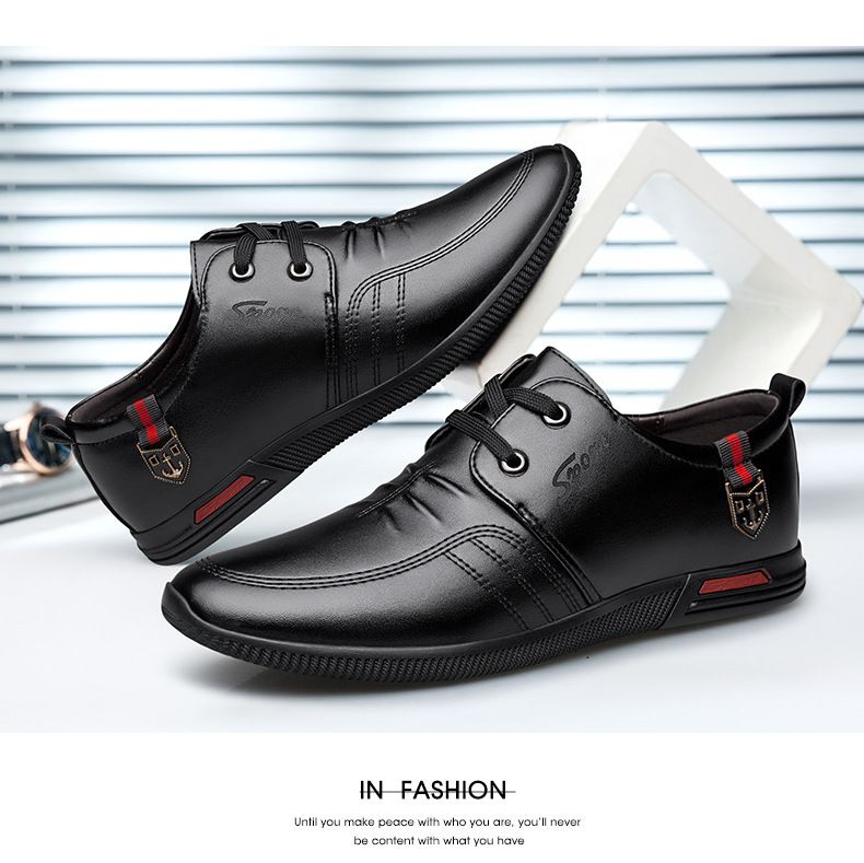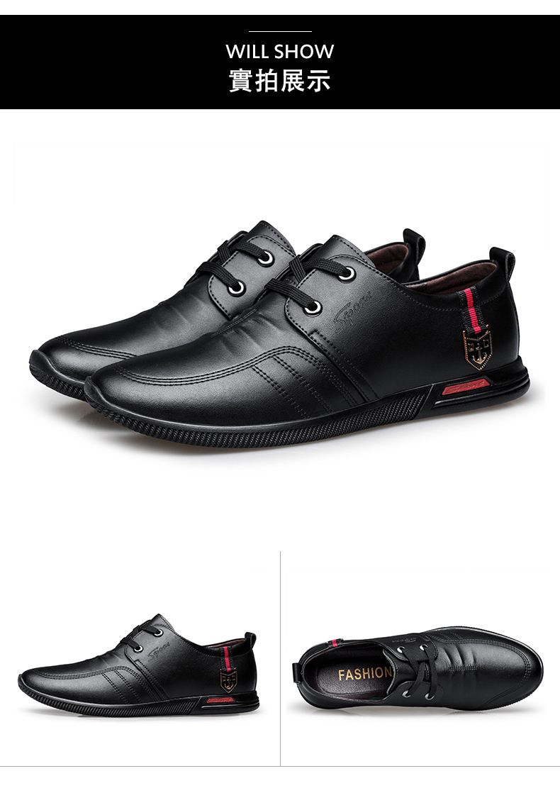 商務軟皮韓版透氣男士皮鞋【買一送一】黑色兩雙