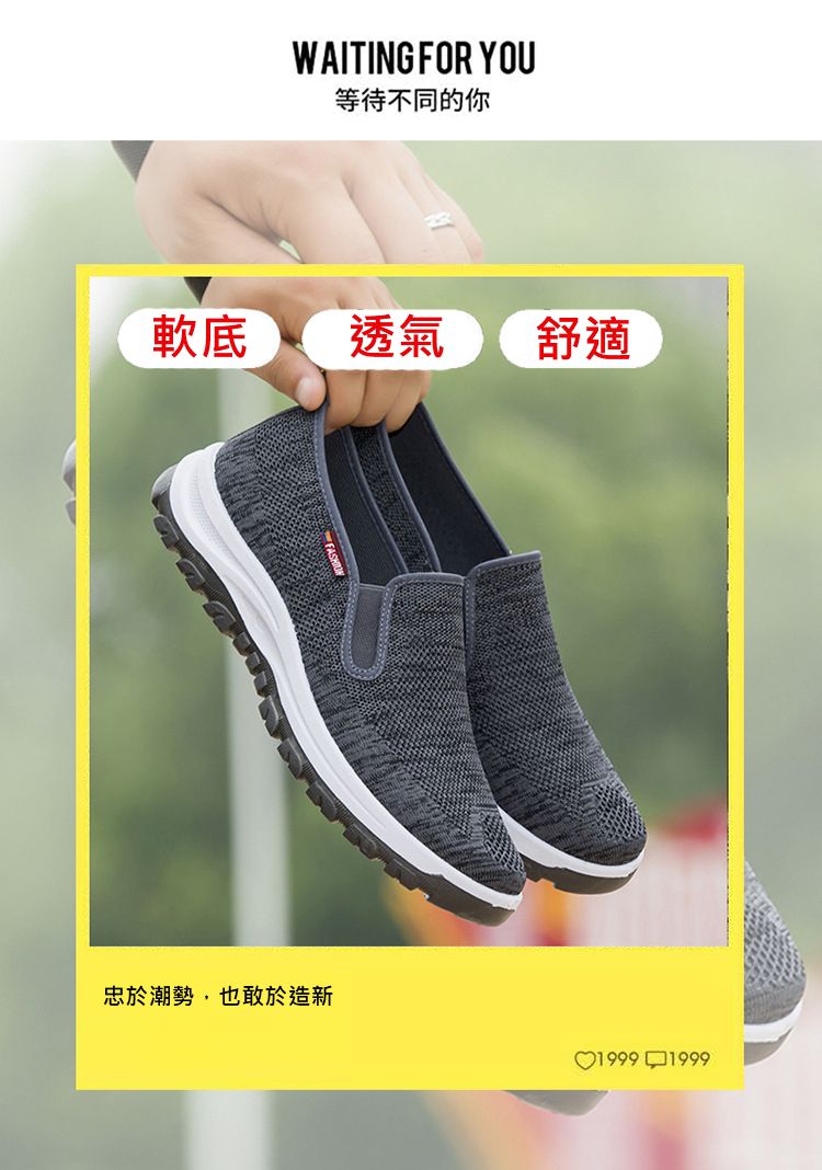 新款軟底耐磨一腳蹬飛織鞋【買一送一】藍色+黑色各一雙