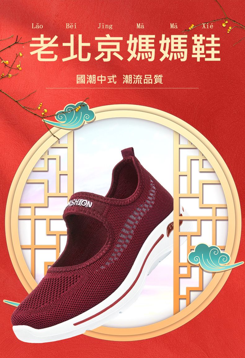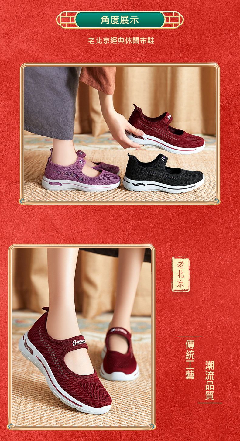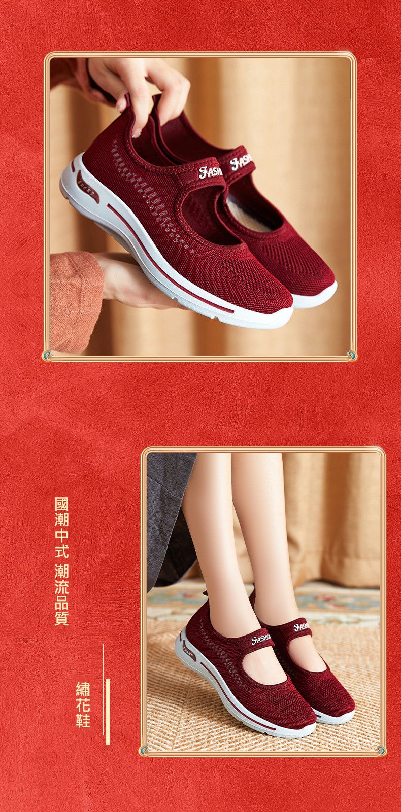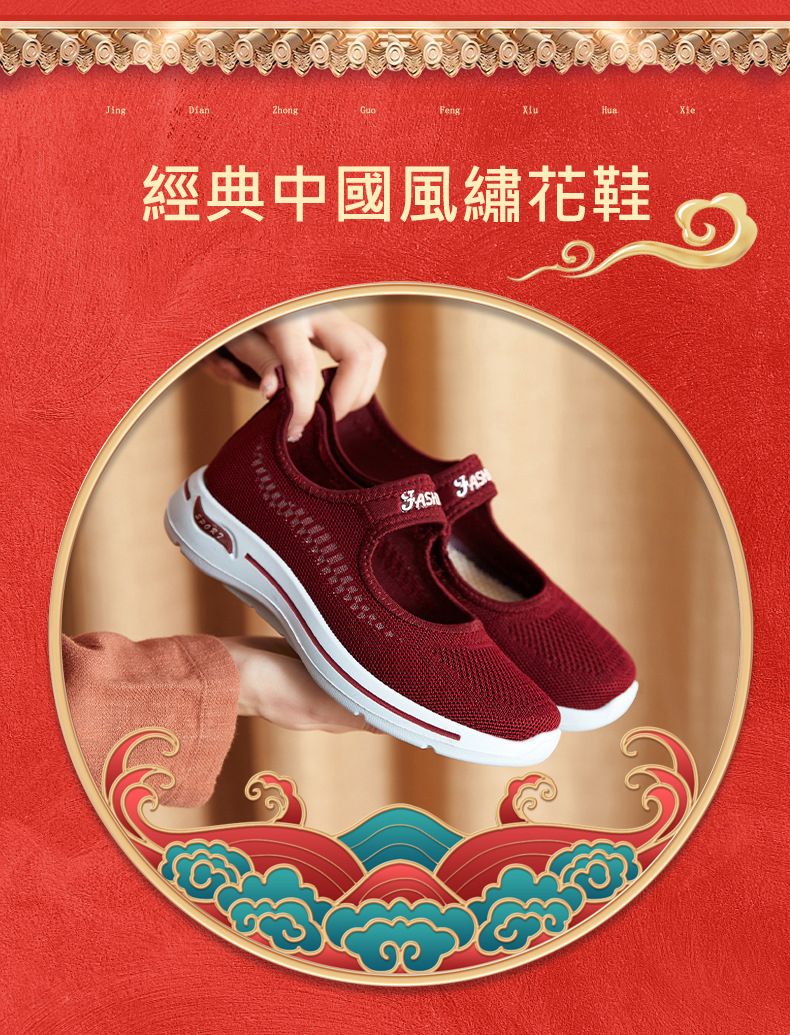 經典中國風中老年媽媽繡花鞋【買一送一】【紅色】+【灰色】各一雙