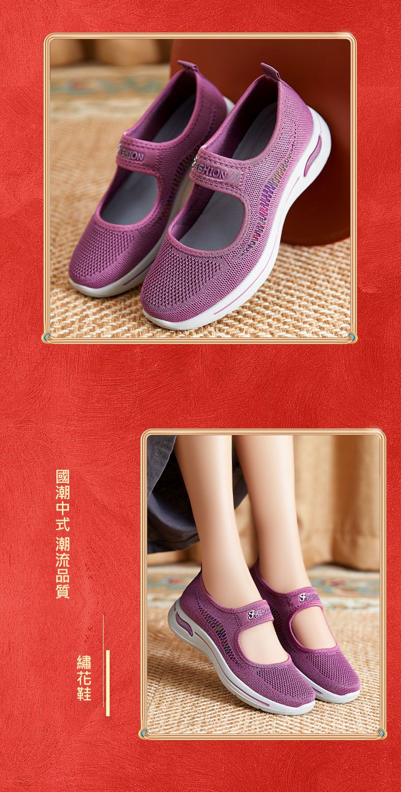 經典中國風中老年媽媽繡花鞋【買一送一】【紫色】+【灰色】各一雙
