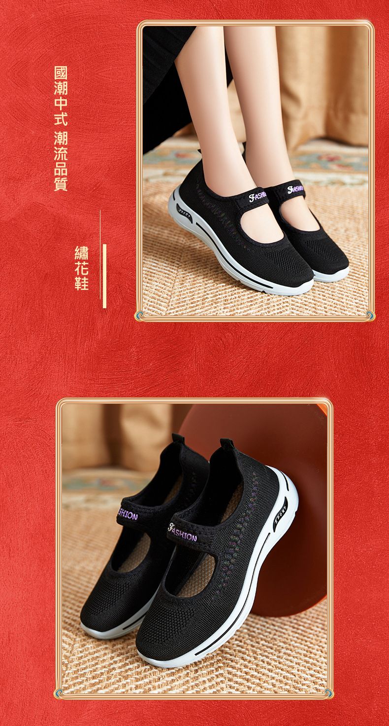 經典中國風中老年媽媽繡花鞋【買一送一】【黑色】+【紅色】各一雙