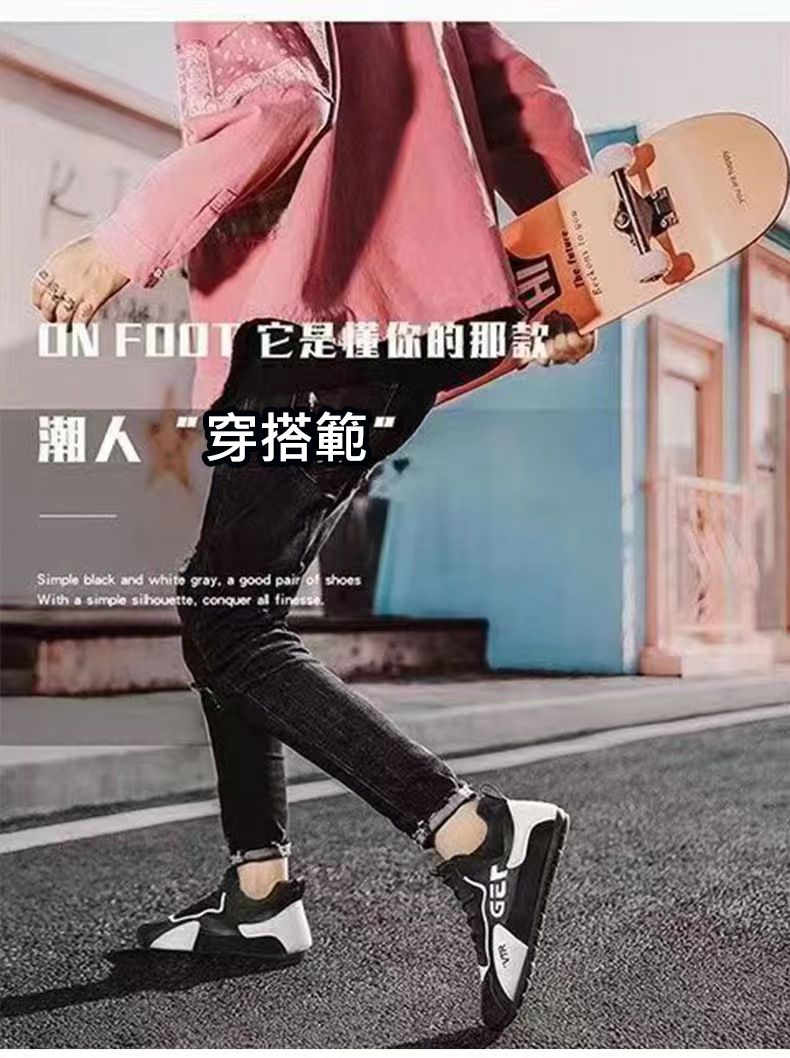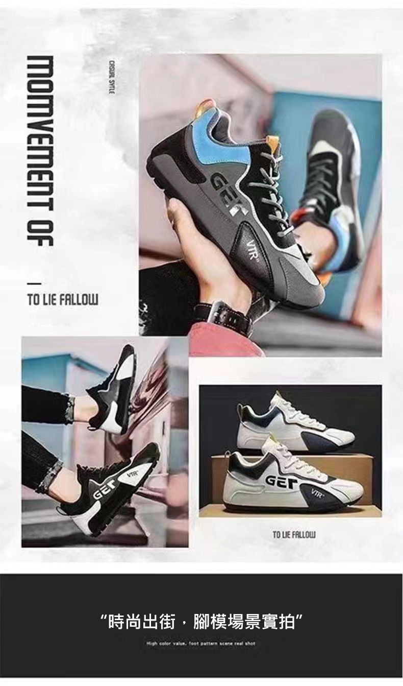 【透氣百搭】春季韓版復古潮流皮面防滑男士跑鞋【黑色】+【白色】各一雙(優惠400)