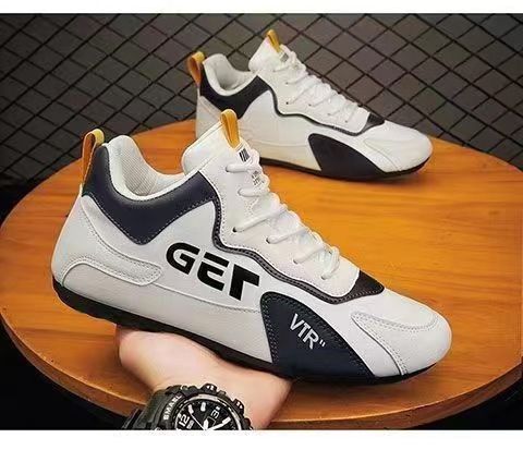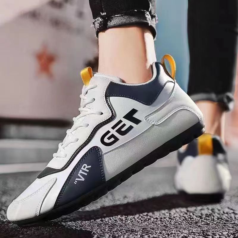 【透氣百搭】春季韓版復古潮流皮面防滑男士跑鞋【白色】一雙