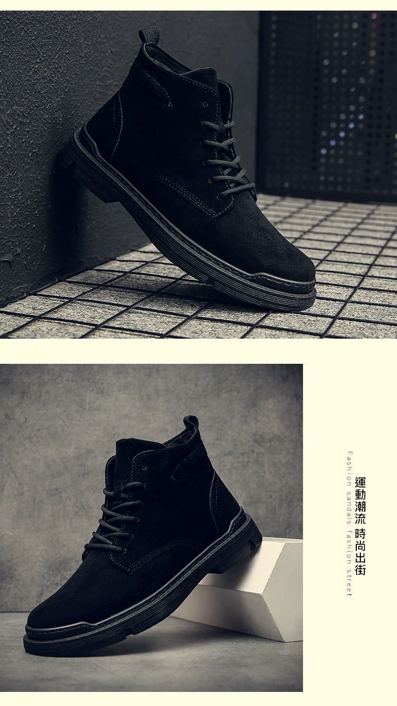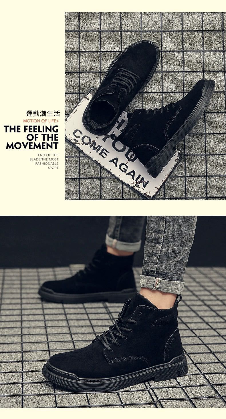 【新款大促】男士高幫潮流軟底百搭工裝鞋【黑色】一雙
