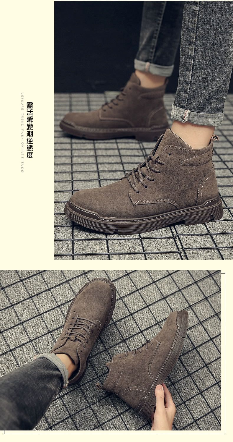 【新款大促】男士高幫潮流軟底百搭工裝鞋【棕色】+【黑色】各一雙(優惠400)