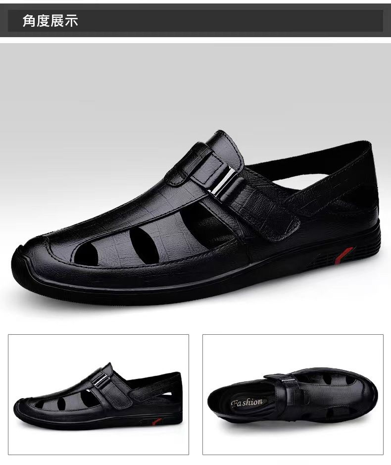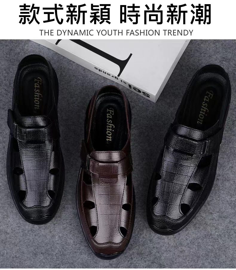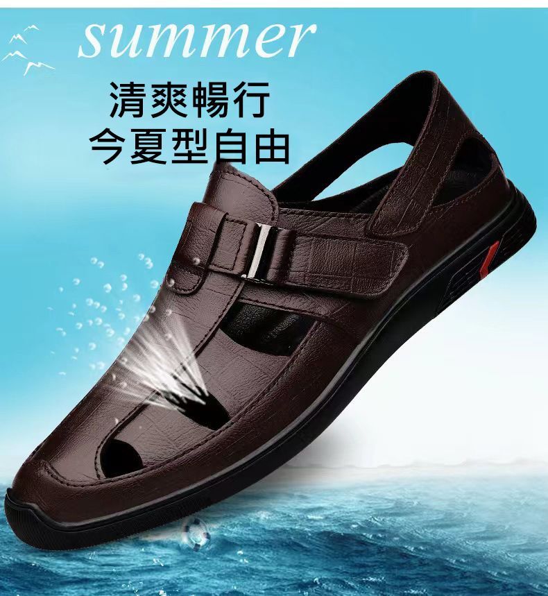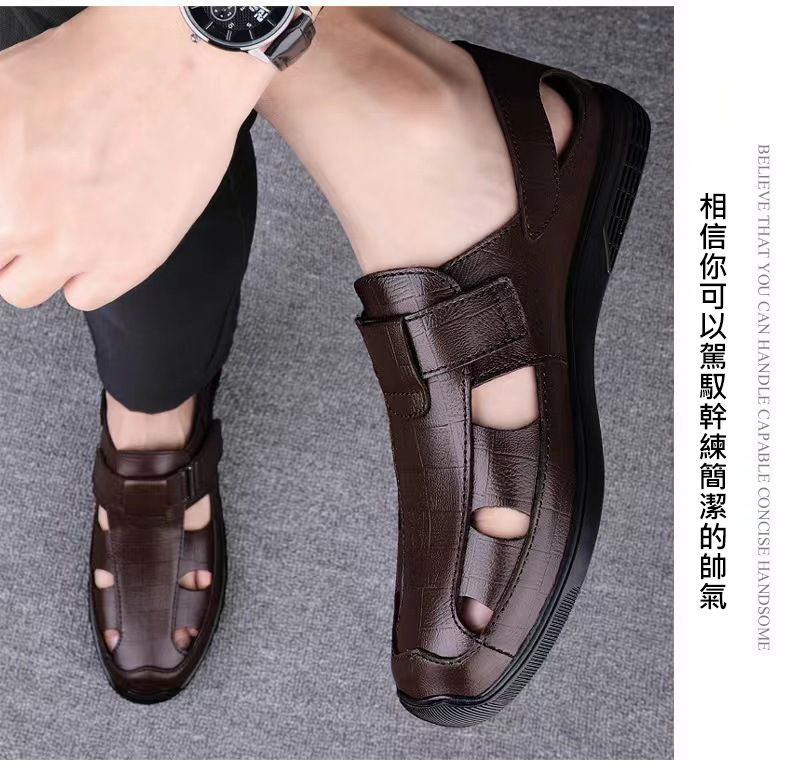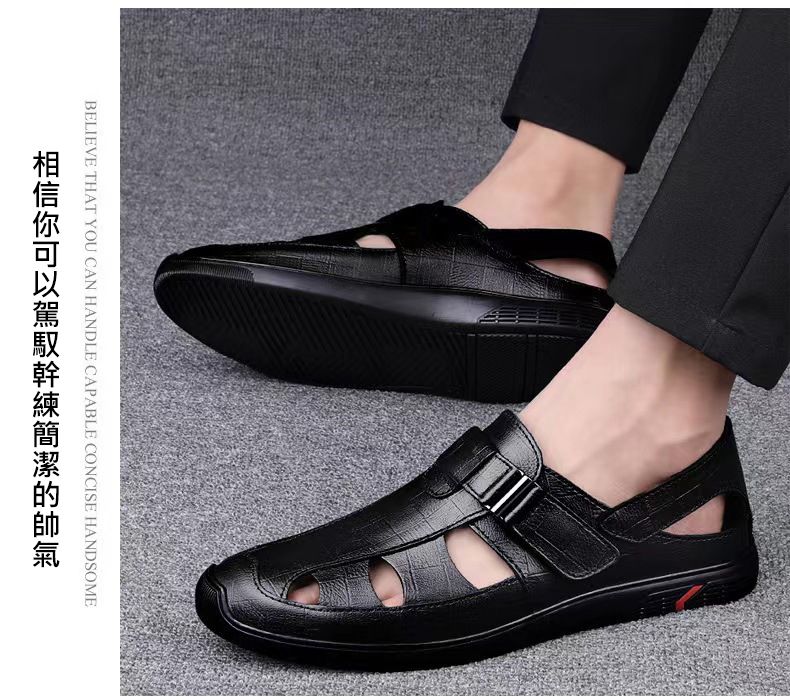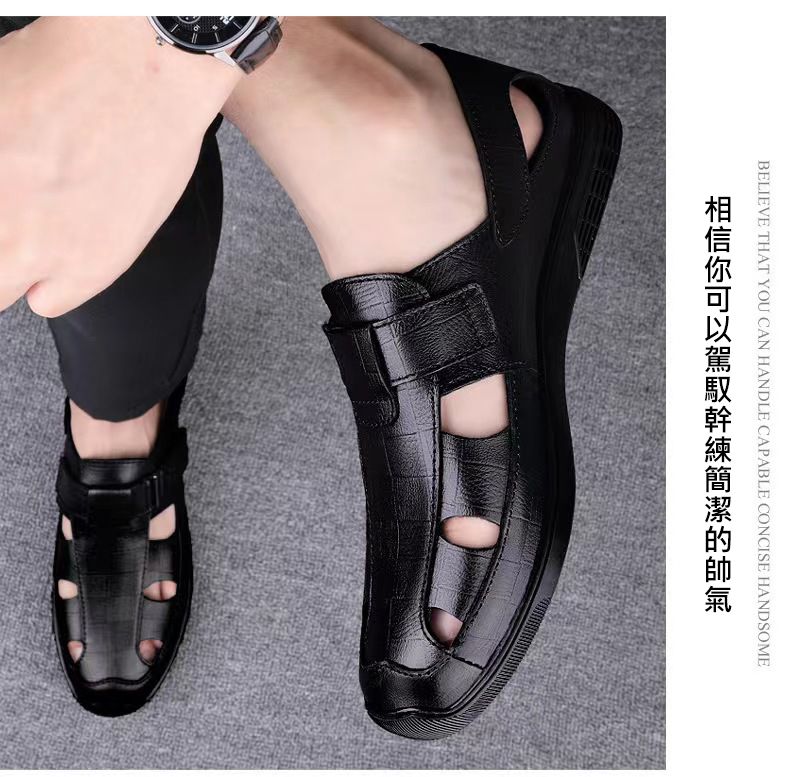 【夏季熱賣,限時買一送一!】男士軟皮透氣鏤空包頭涼皮鞋