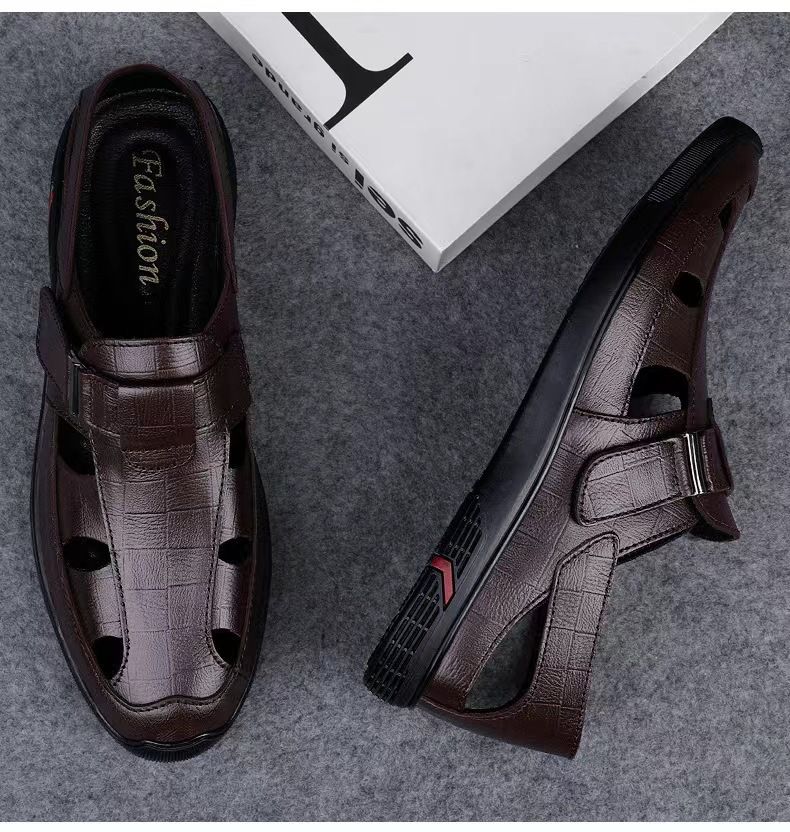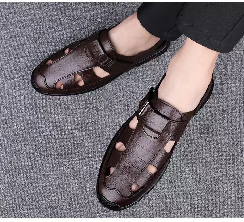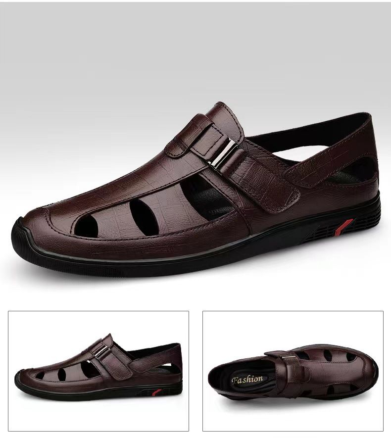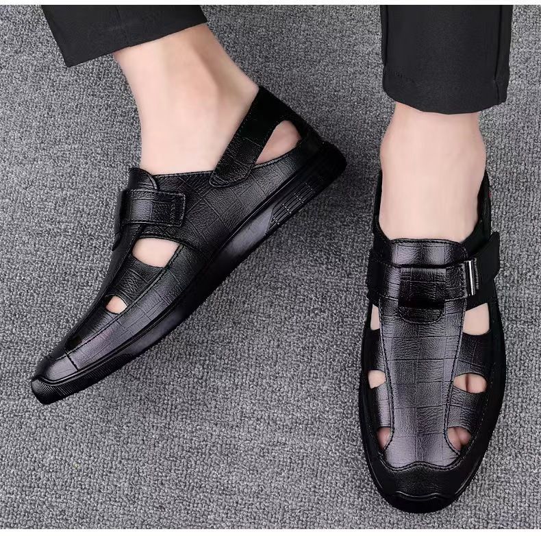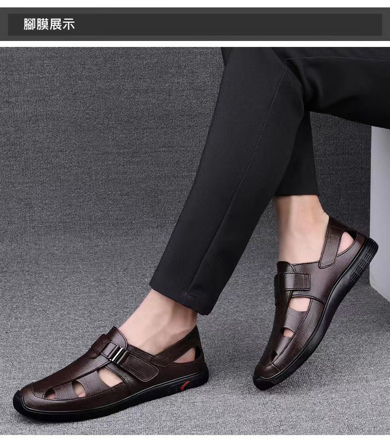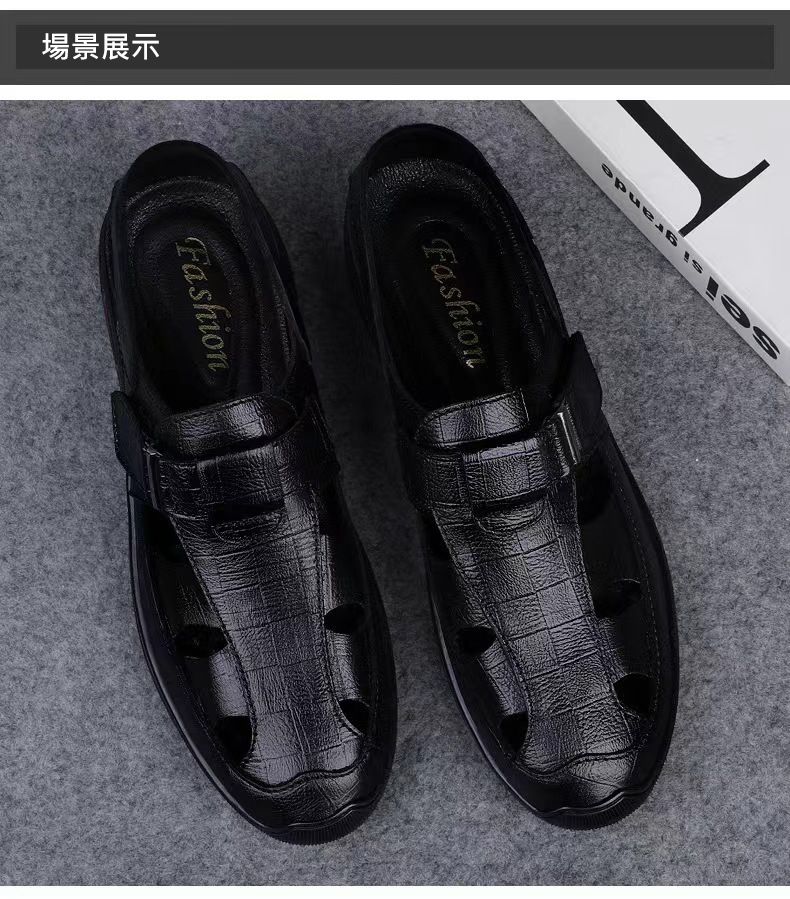 【夏季熱賣,限時買一送一!】男士軟皮透氣鏤空包頭涼皮鞋