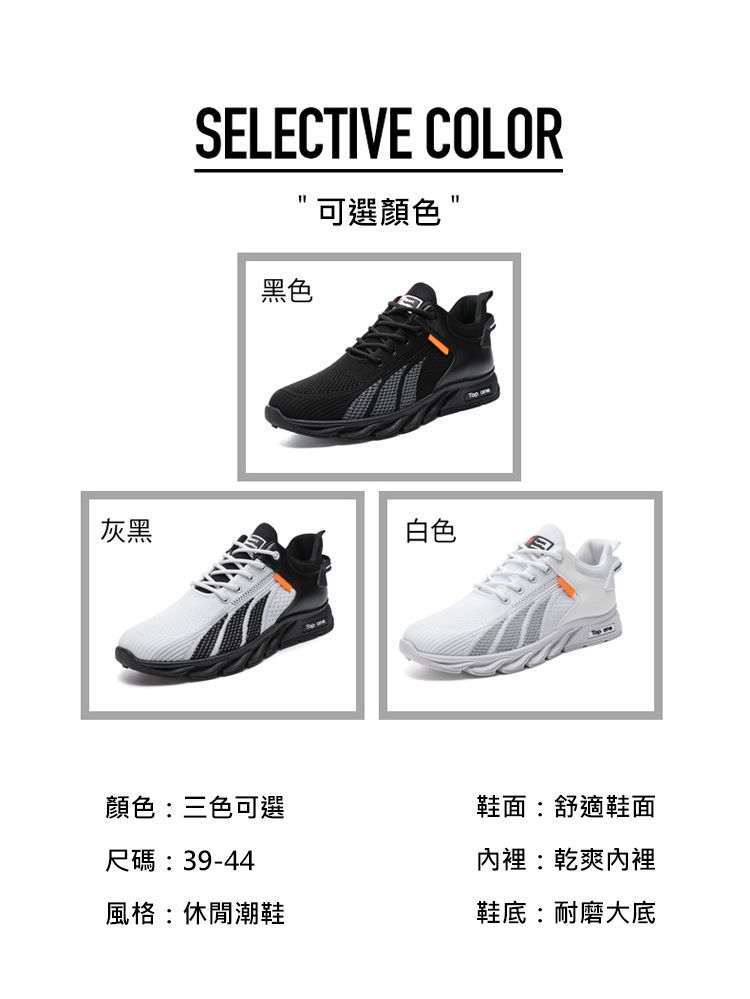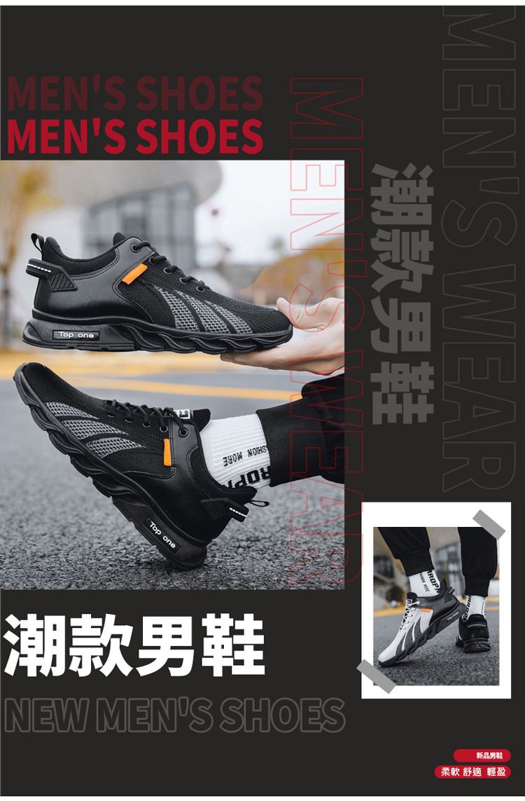 【高顏實力派】柔韌有型新款男士飛織運動軟底鞋【黑白色】一雙
