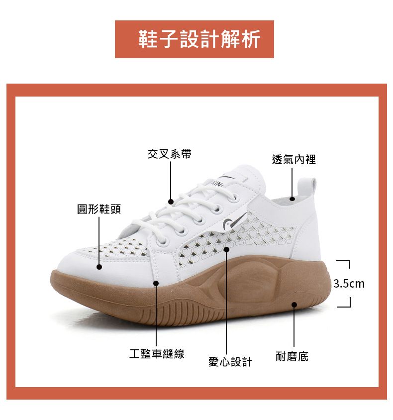 【夏天穿這雙就夠了!】新款女士增高輕便透氣休閒鞋【白色】一雙