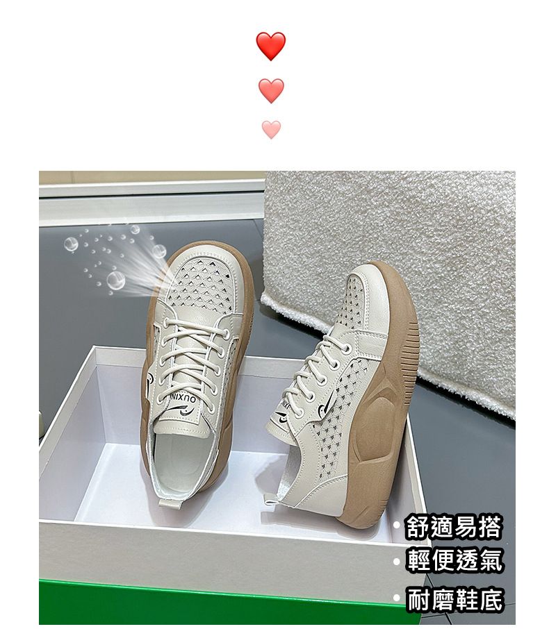 【夏天穿這雙就夠了!】新款女士增高輕便透氣休閒鞋【白色】+【米色】各一雙(優惠400)