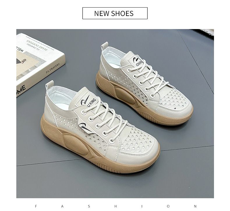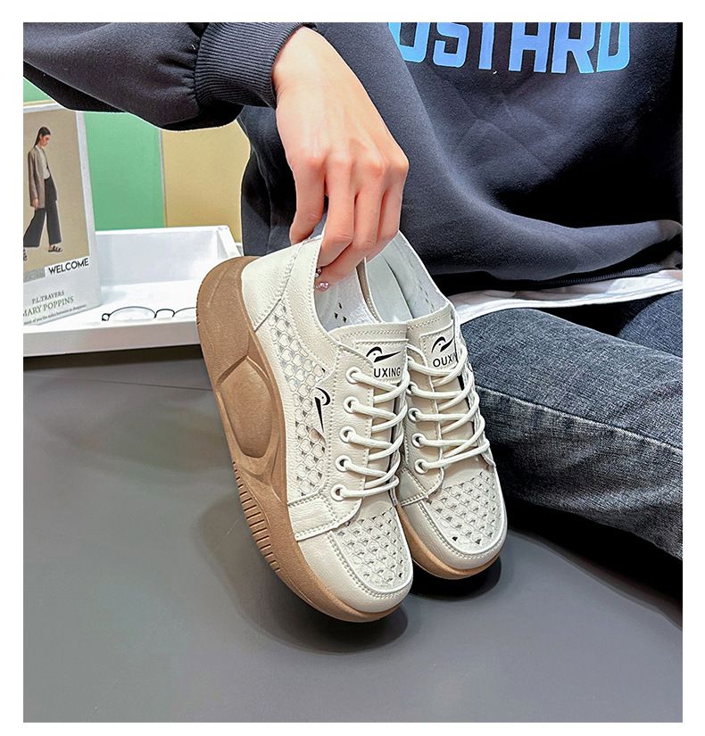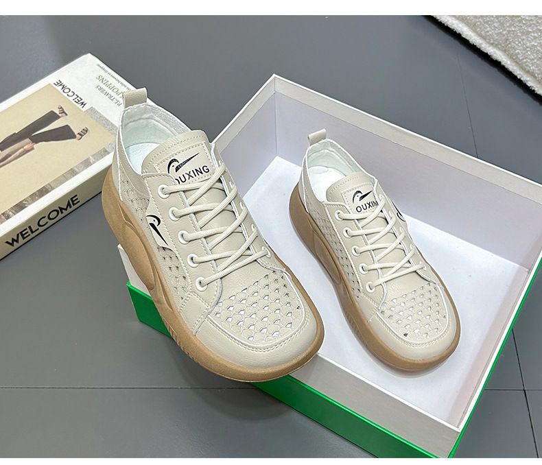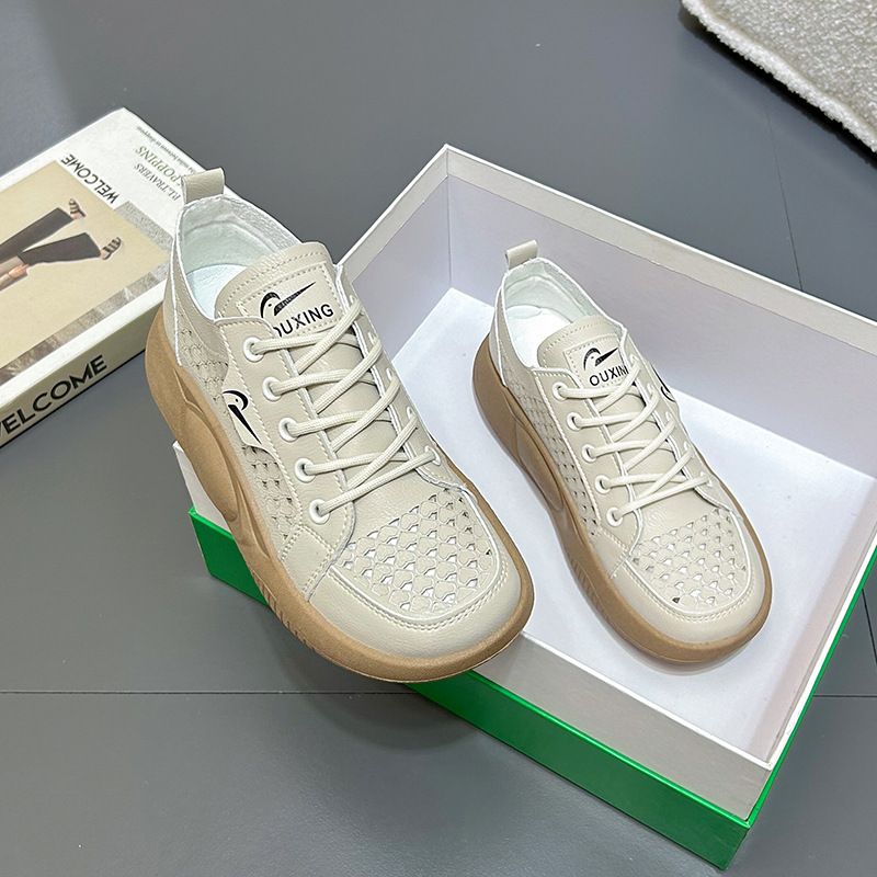 【夏天穿這雙就夠了!】新款女士增高輕便透氣休閒鞋【米色】一雙