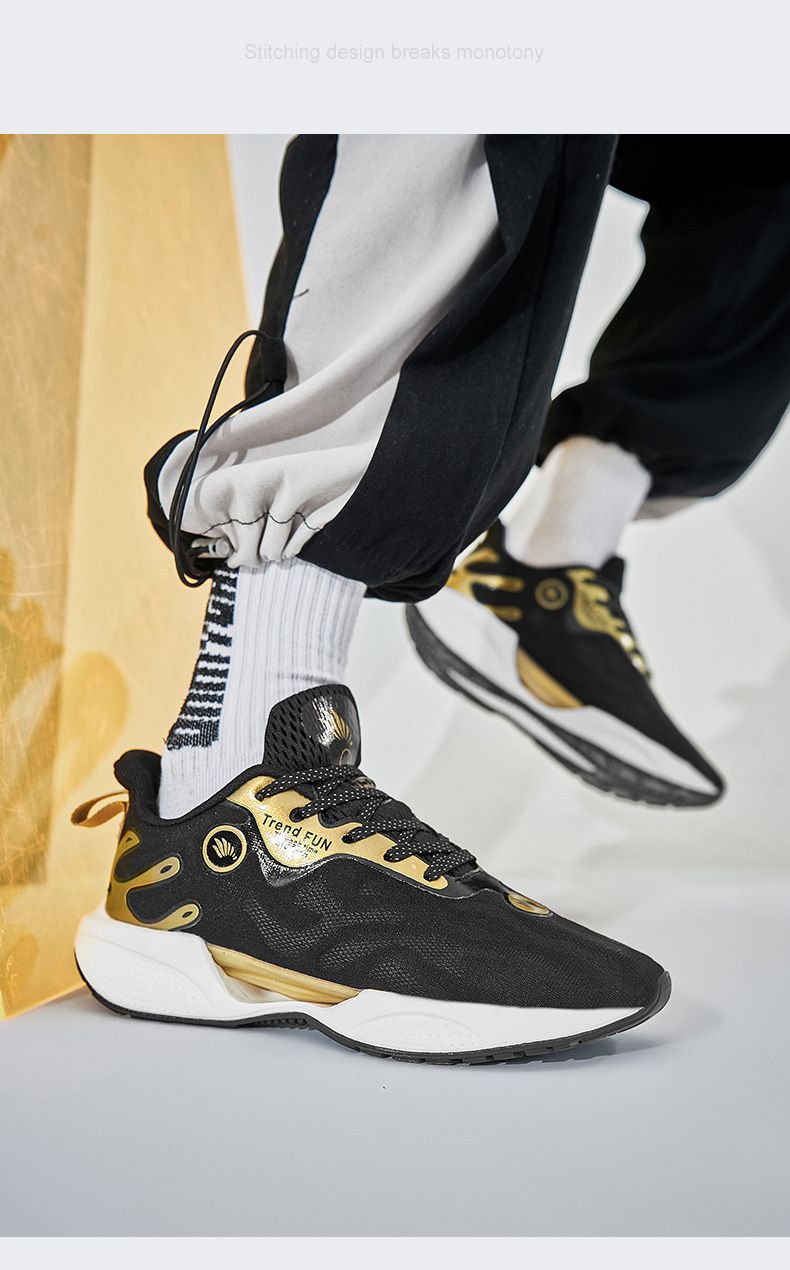 【輕便百搭】秋季透氣薄款運動男鞋【黑金色】一雙