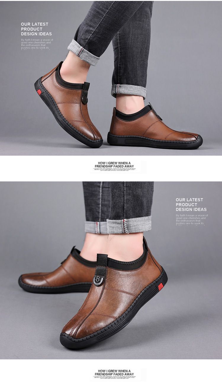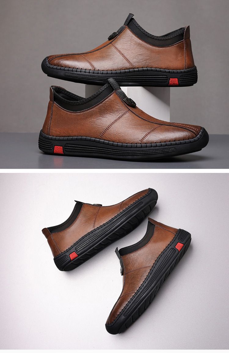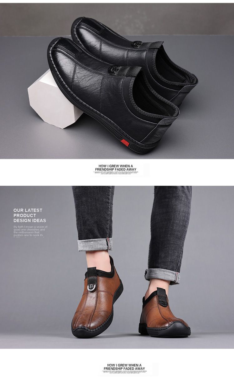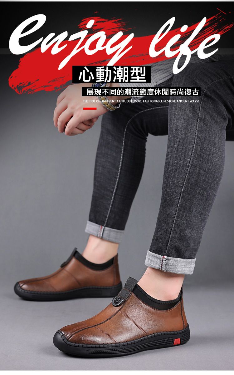 【手工上線,拒絕開膠!】輕質透氣時尚拼接便捷套腳軟皮鞋【黑色】+【棕色】各一雙(優惠400)