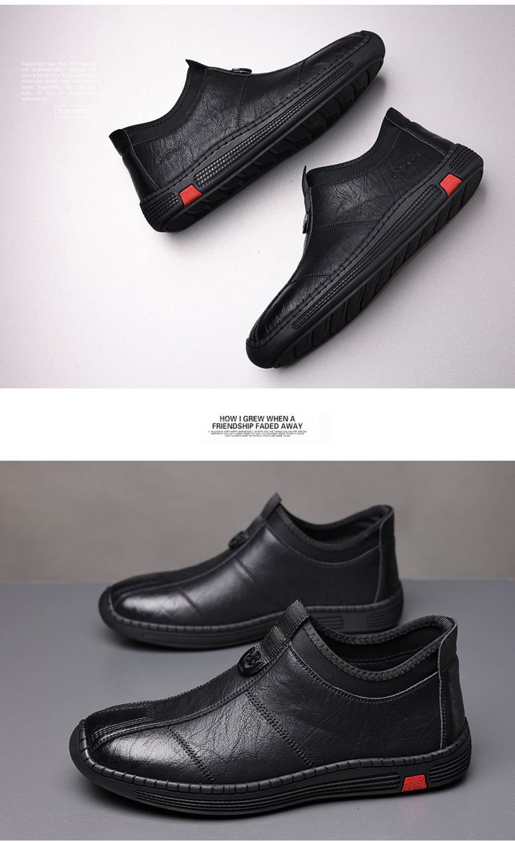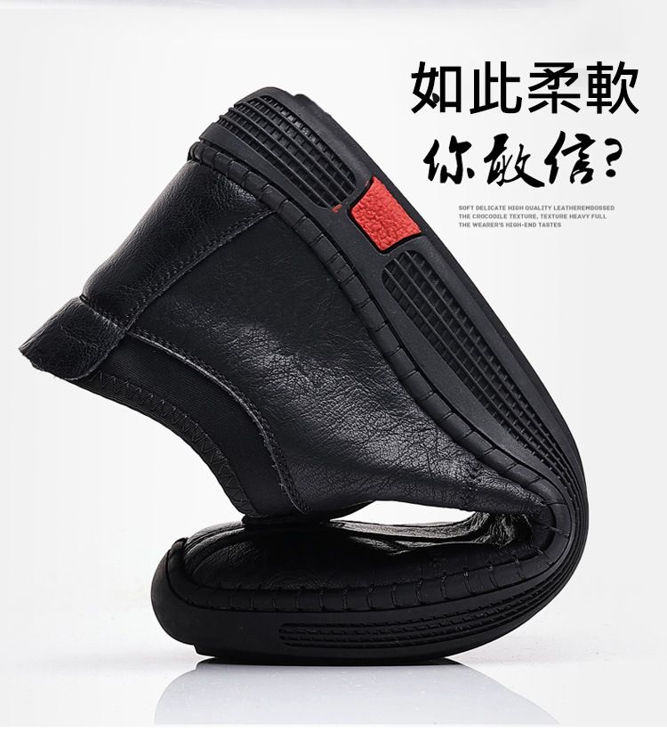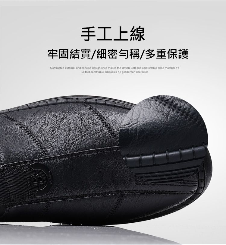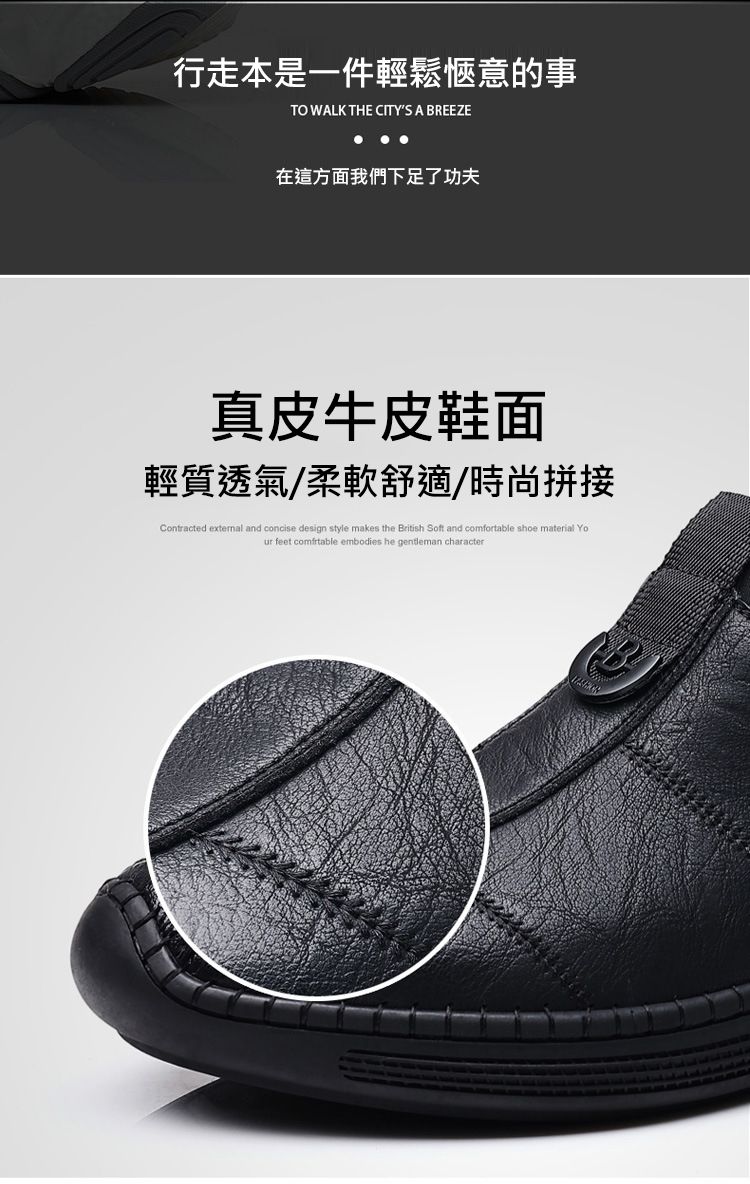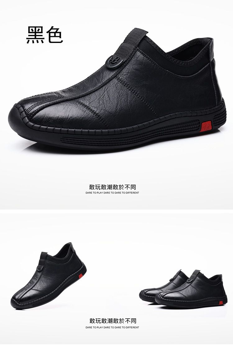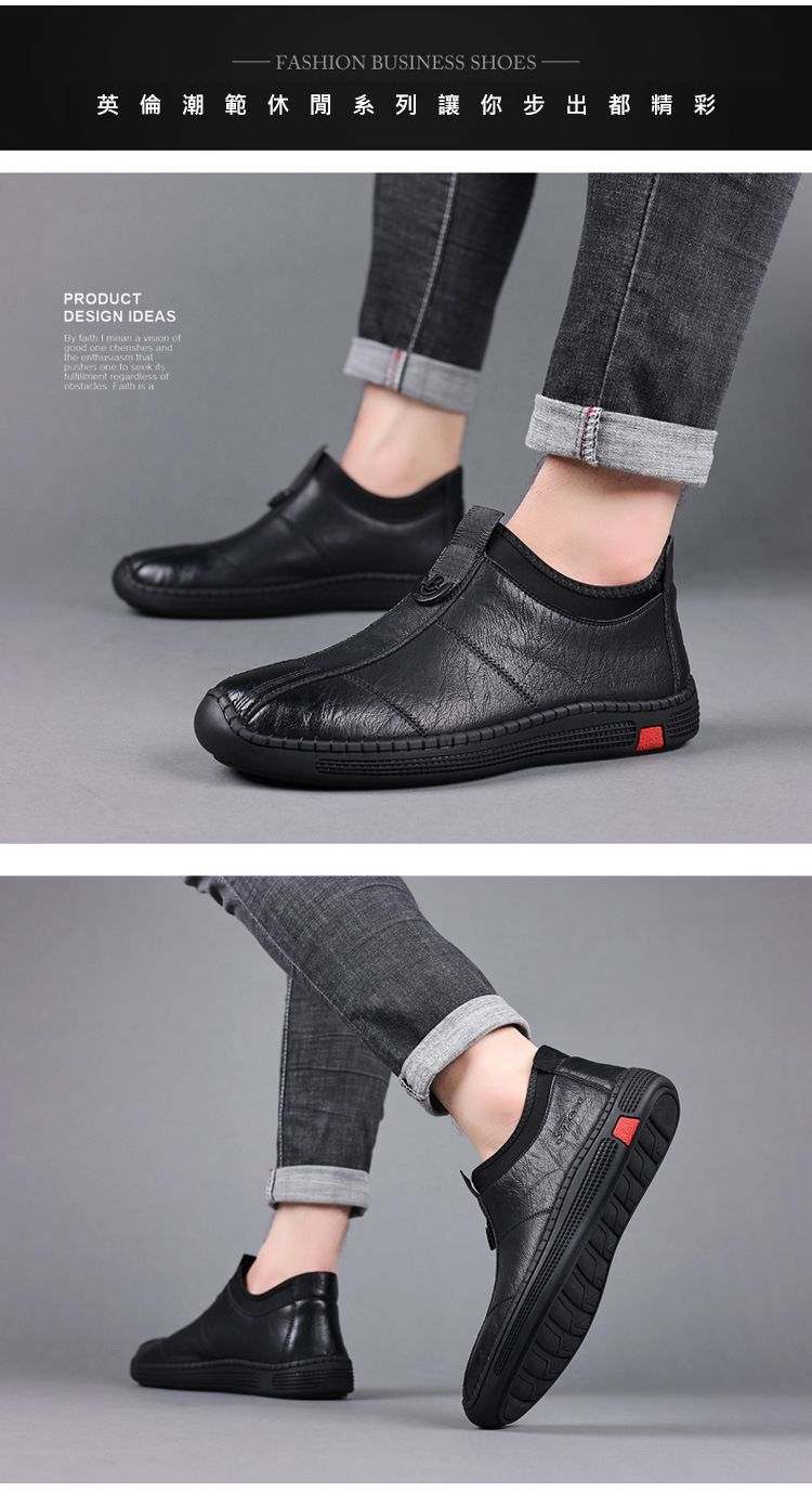 【手工上線,拒絕開膠!】輕質透氣時尚拼接便捷套腳軟皮鞋【黑色】一雙