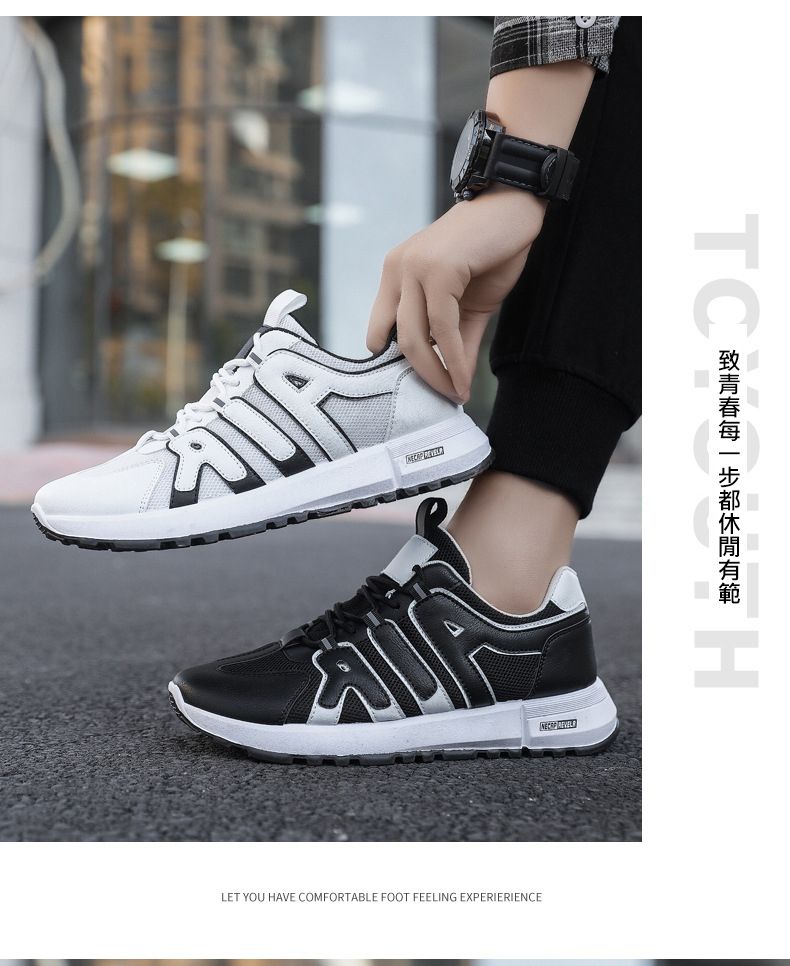 【經典休閒!】男士透氣網布跑步運動鞋【白色】+【黑色】各一雙(優惠400)