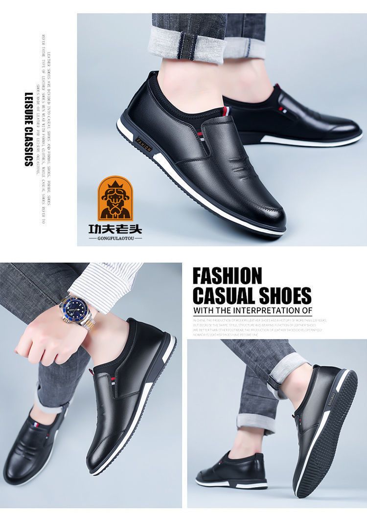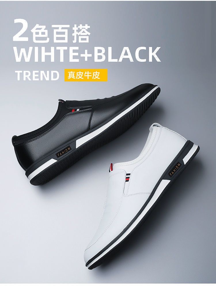 男士舒適休閒潮流皮鞋【限時買一送一】【白色】+【黑色】各一雙