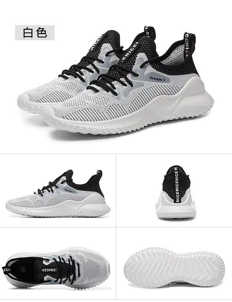 【透氣不捂腳!】男士飛織網面休閒運動鞋【白色】一雙