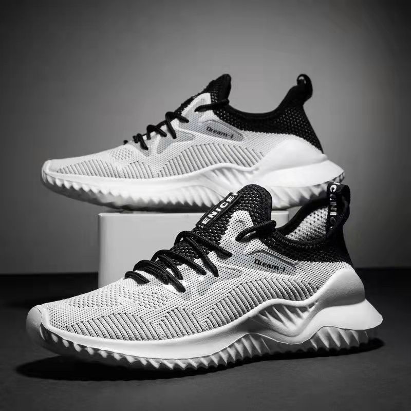 【透氣不捂腳!】男士飛織網面休閒運動鞋【黑色】+【白色】各一雙(優惠400)