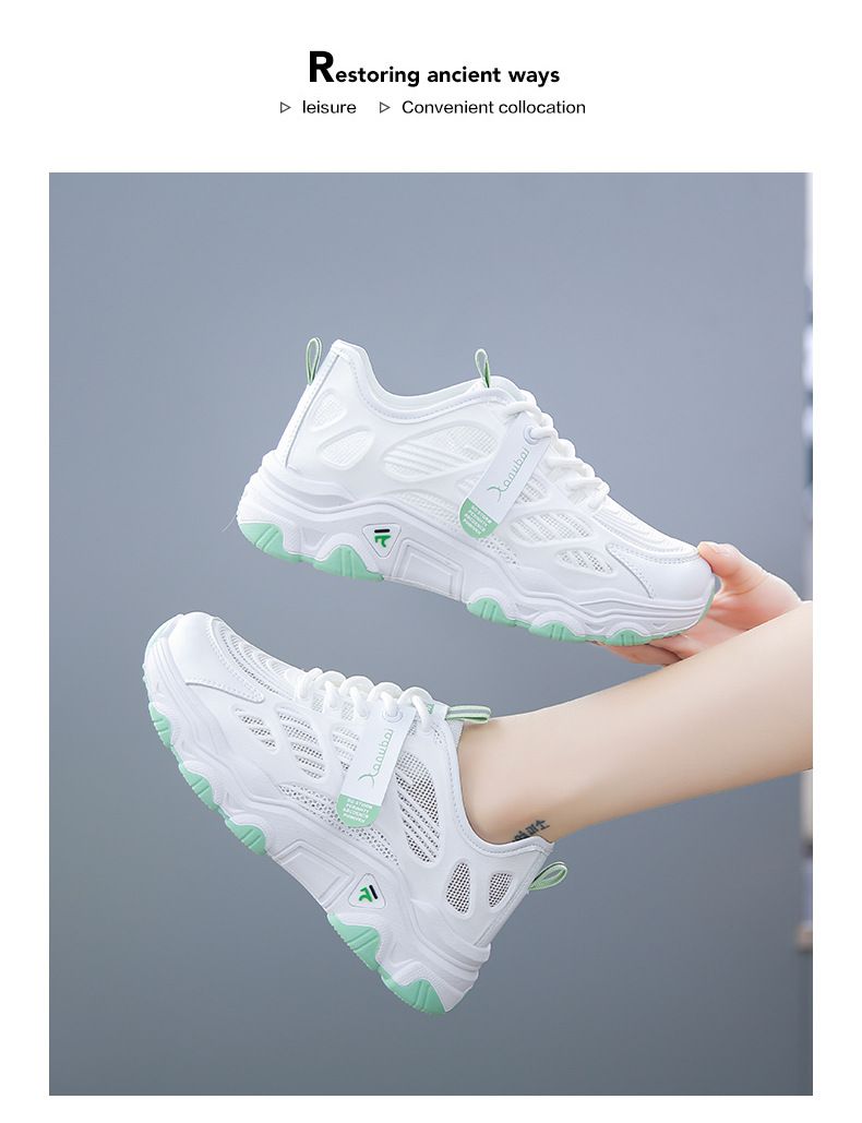 【親膚柔軟,透氣吸汗!】韓版女士毛毛蟲老爹鞋【白綠色】+【白灰色】各一雙(優惠400)