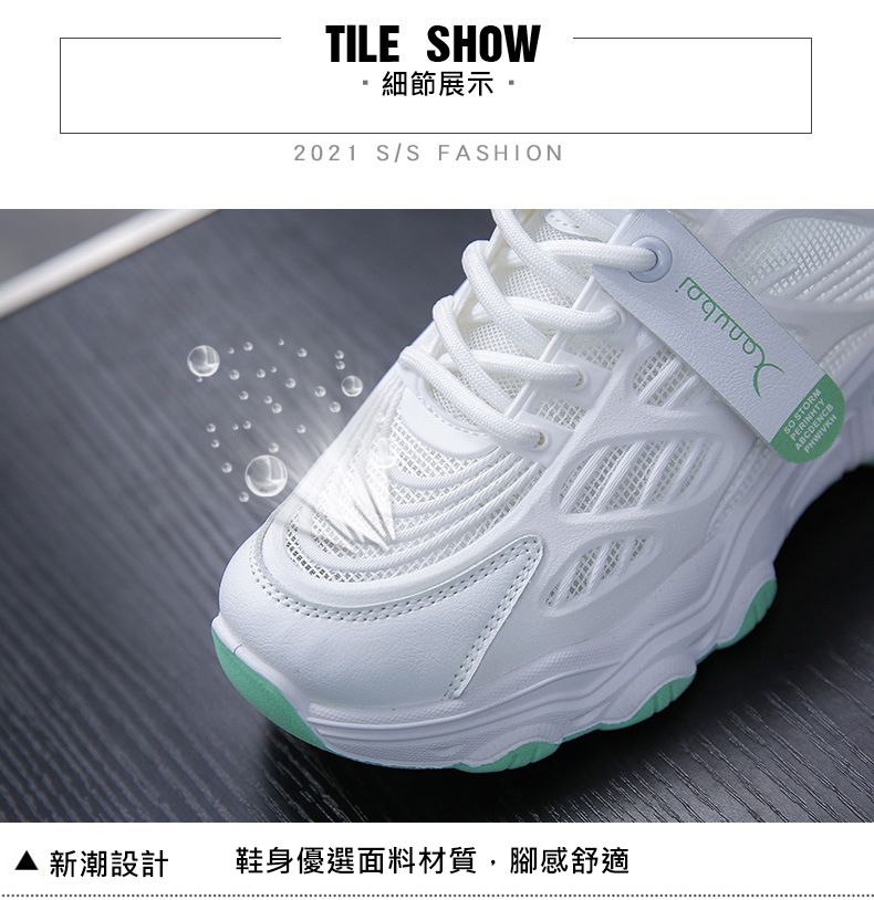 【親膚柔軟,透氣吸汗!】韓版女士毛毛蟲老爹鞋【白綠色】一雙