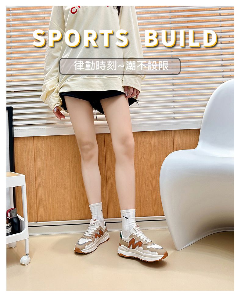 【簡約不簡單!】女士4cm增高休閒運動鞋【單網卡其色】