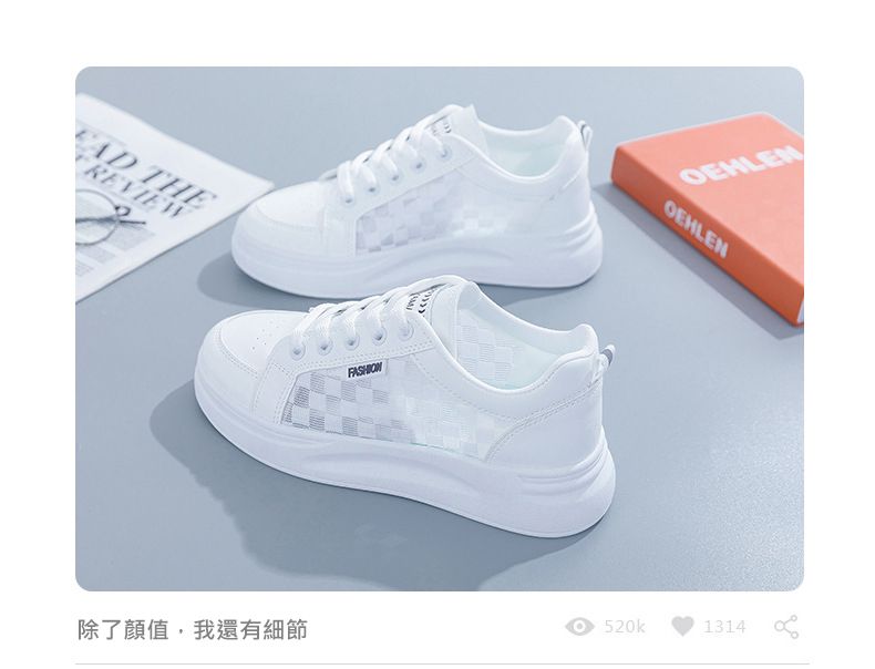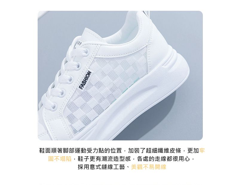 【超透氣!】夏季女士薄款網面增高休閒運動鞋【棋盤圖案】一雙