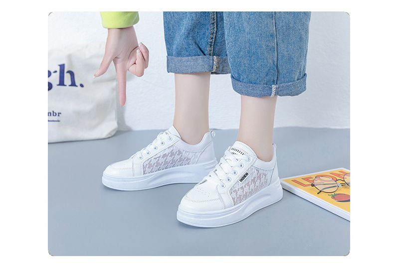 【超透氣!】夏季女士薄款網面增高休閒運動鞋【千鳥圖案】一雙