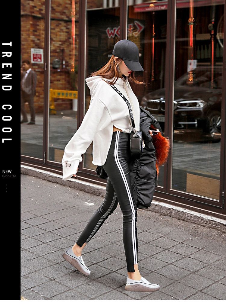 【純色皮革】女士一腳蹬厚底增高休閒小皮鞋【白色】一雙