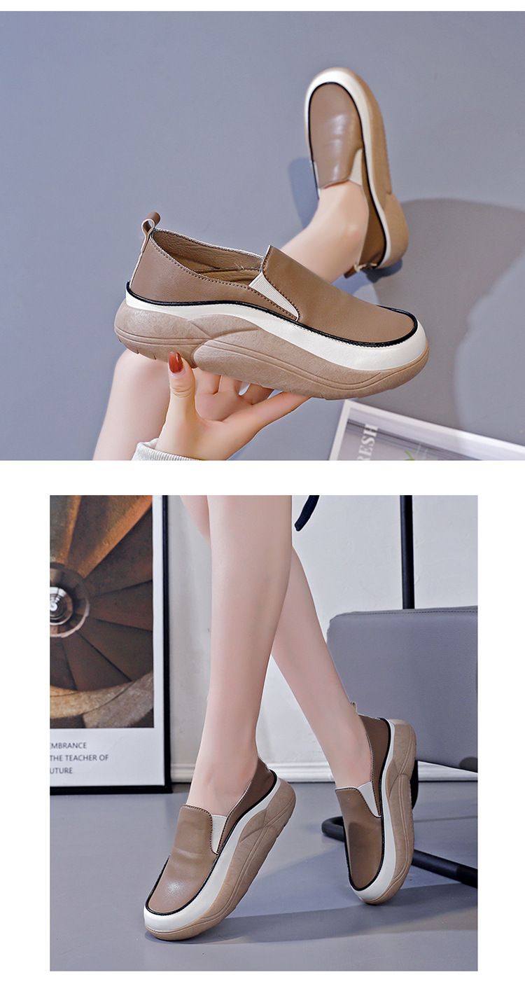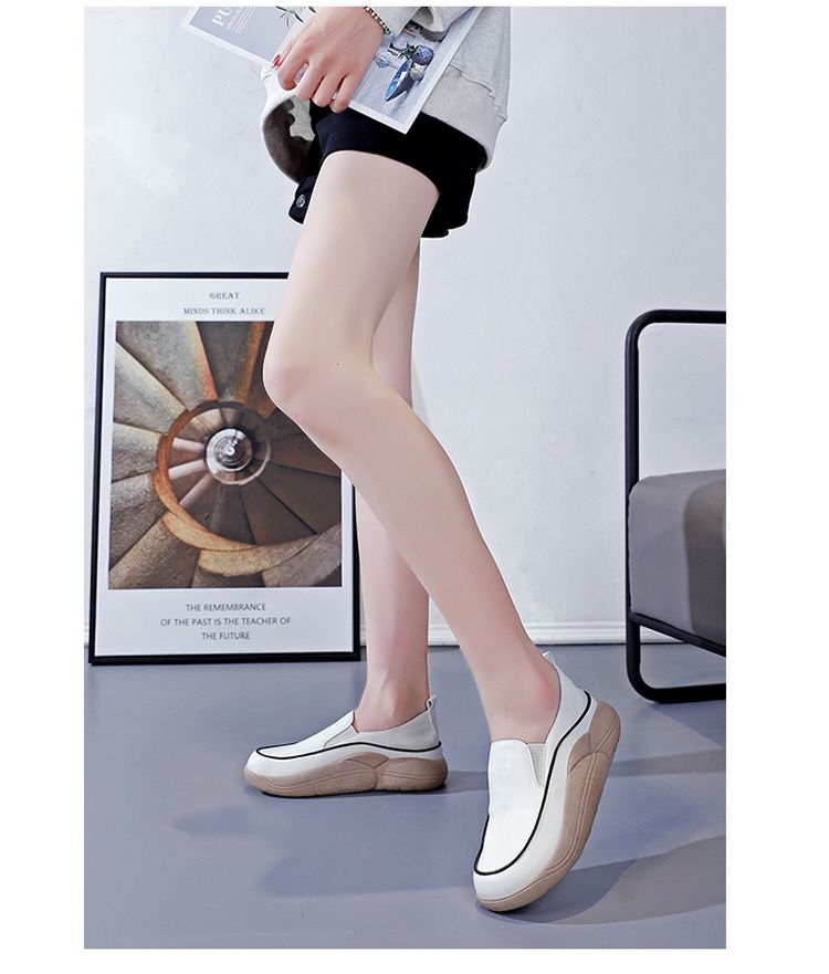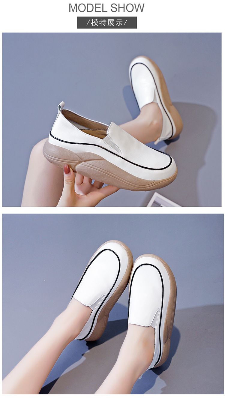 【純色皮革】女士一腳蹬厚底增高休閒小皮鞋【白色】+【棕色】各一雙(優惠400)
