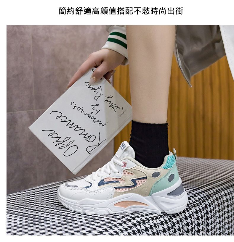女士網面透氣百搭休閒拼色運動鞋【米粉色】+【白蘭色】各一雙(優惠400)