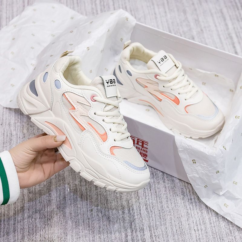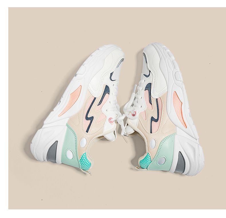 女士網面透氣百搭休閒拼色運動鞋【米粉色】一雙