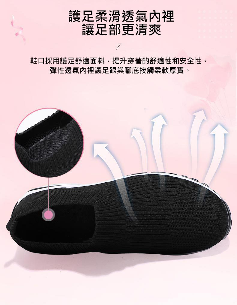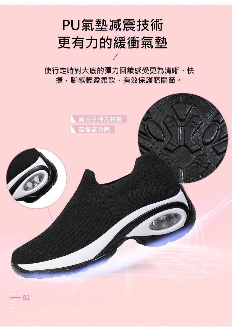 【PU氣墊減震】女士休閒百搭飛織透氣一腳蹬跑步鞋【黑色】一雙