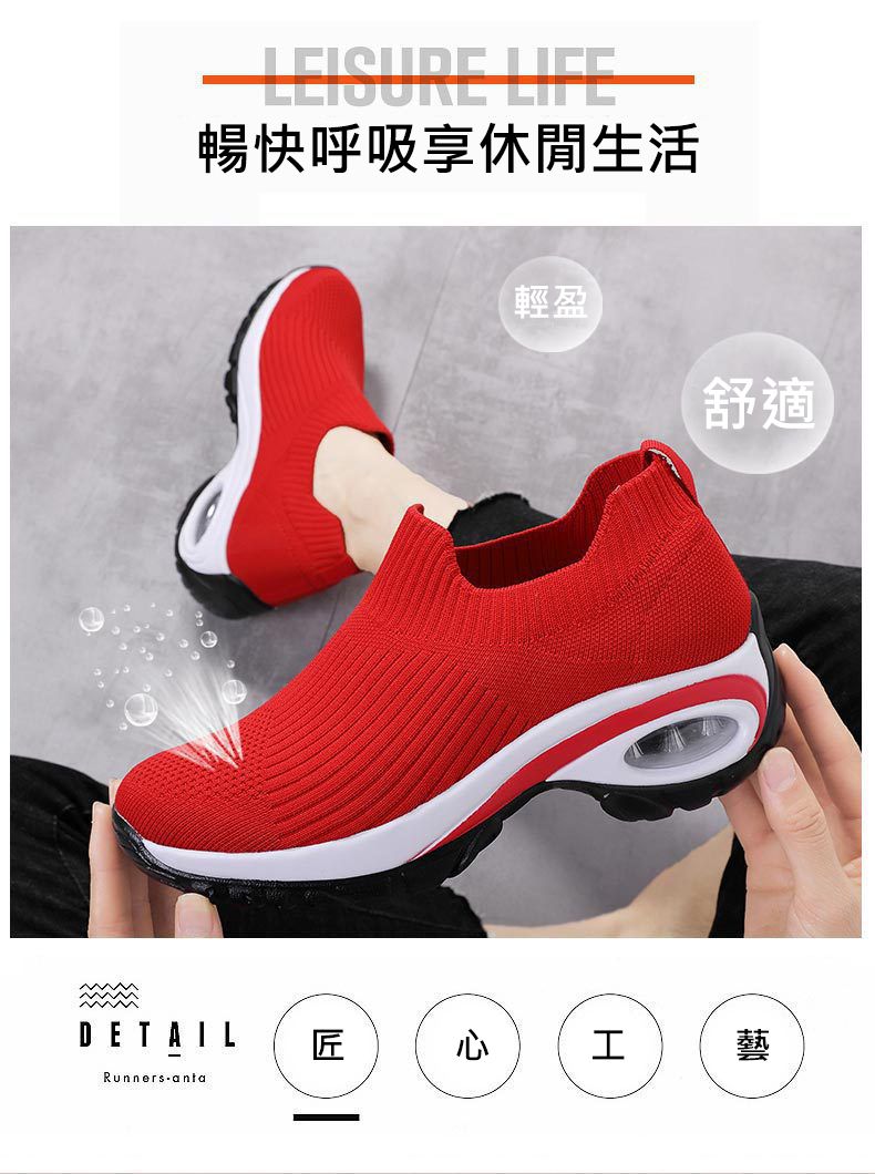 【PU氣墊減震】女士休閒百搭飛織透氣一腳蹬跑步鞋【紅色】+【黑色】各一雙(優惠400)
