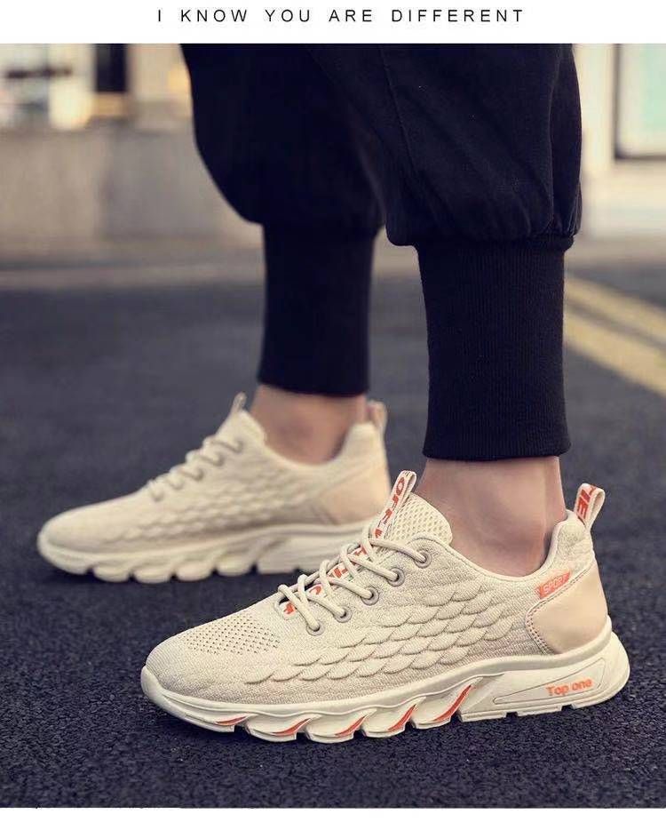 【輕質如翼!】男士飛織網面平底休閒運動鞋【杏色】+【灰色】各一雙(優惠400)