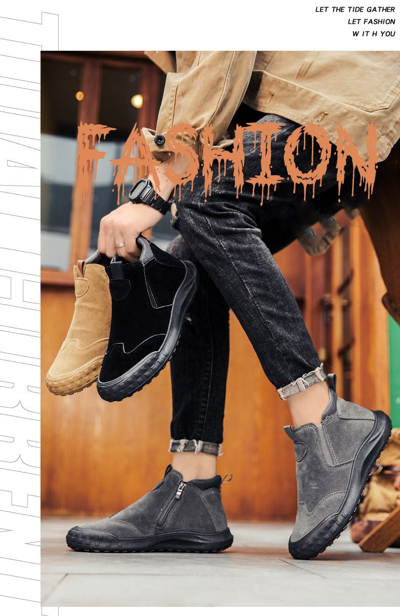 【“潮有範”】男士耐磨防滑一腳蹬工裝鞋【卡其色】+【灰色】各一雙(優惠400)