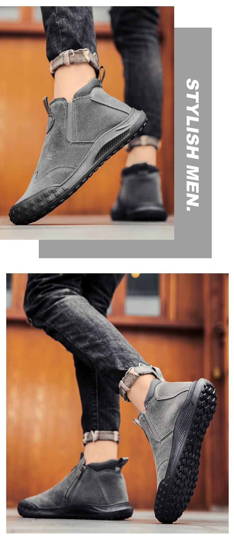 【“潮有範”】男士耐磨防滑一腳蹬工裝鞋【灰色】+【黑色】各一雙(優惠400)