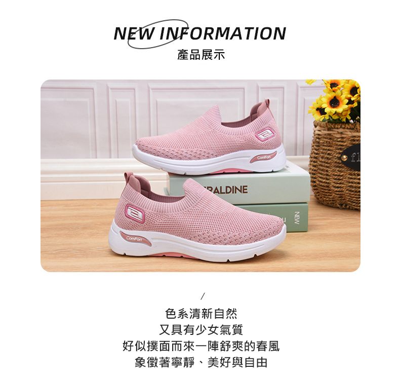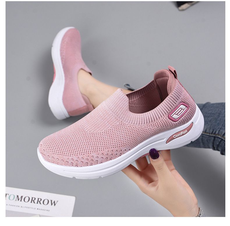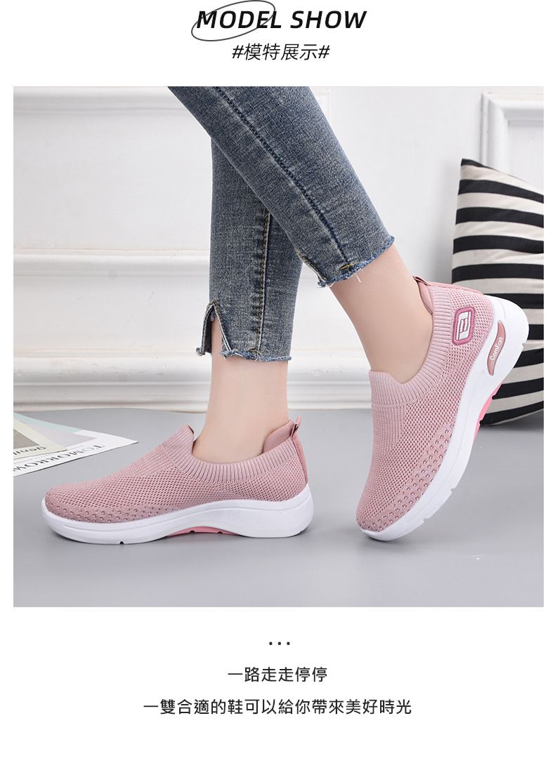 中老年透氣飛織休閒軟底女鞋【買一送一】粉色兩雙