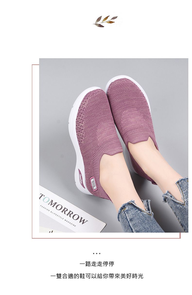中老年透氣飛織休閒軟底女鞋【買一送一】粉色+紫色各一雙